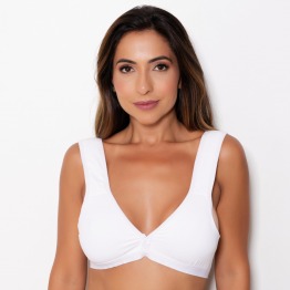 Triângulo: ele pode ser com bojo ou sem e tem, literalmente, o formato de um triângulo. Ele não tem a função de aumentar os seios nem dar forma a eles. Tem vários tipos, anatômico, com base lateral. Ele é o preferido das mais jovens, para usar com regata larguinha para que ele fique aparecendo. Só quem tem seios pequenos e não quer dar a impressão de aumentá-los podem utilizar esse modelo.