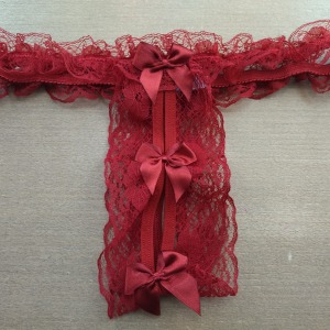 Tanga confeccionada com uma combinação de renda delicada e detalhes em lacinho de cetim, proporcionando um visual elegante e sensual. O design é adornado com laços na parte frontal e traseira, adicionando um toque romântico à peça. A renda possui um recorte estratégico, criando uma abertura central que adiciona charme e ousadia ao design. As laterais são finas, ajustando-se confortavelmente ao corpo, e a parte traseira segue o estilo fio dental, valorizando as curvas. Ideal para quem busca uma peça sofisticada e com apelo sensual.