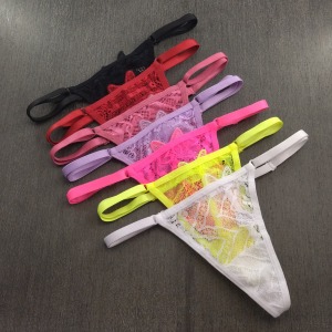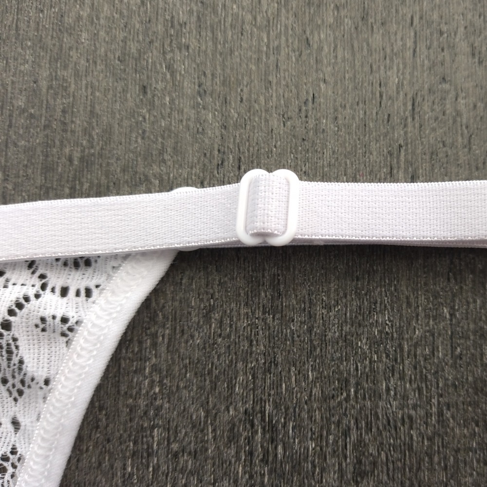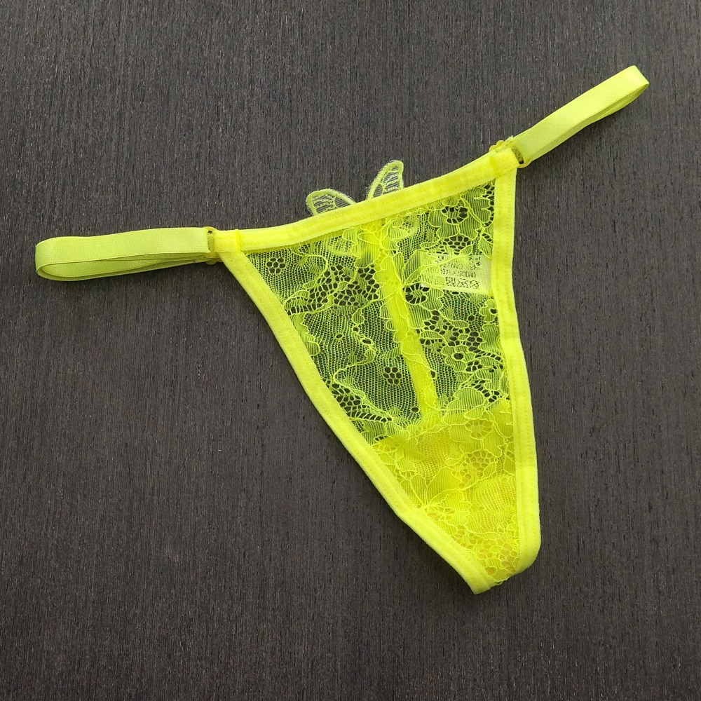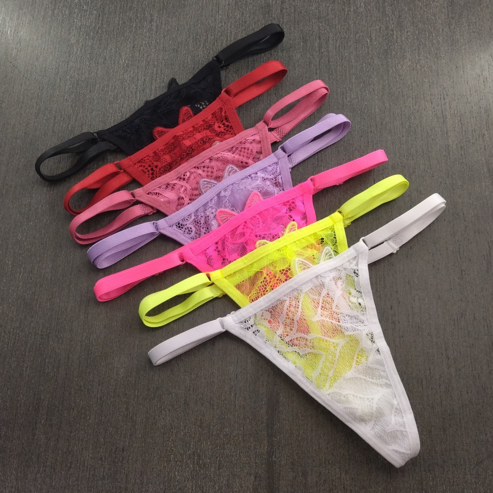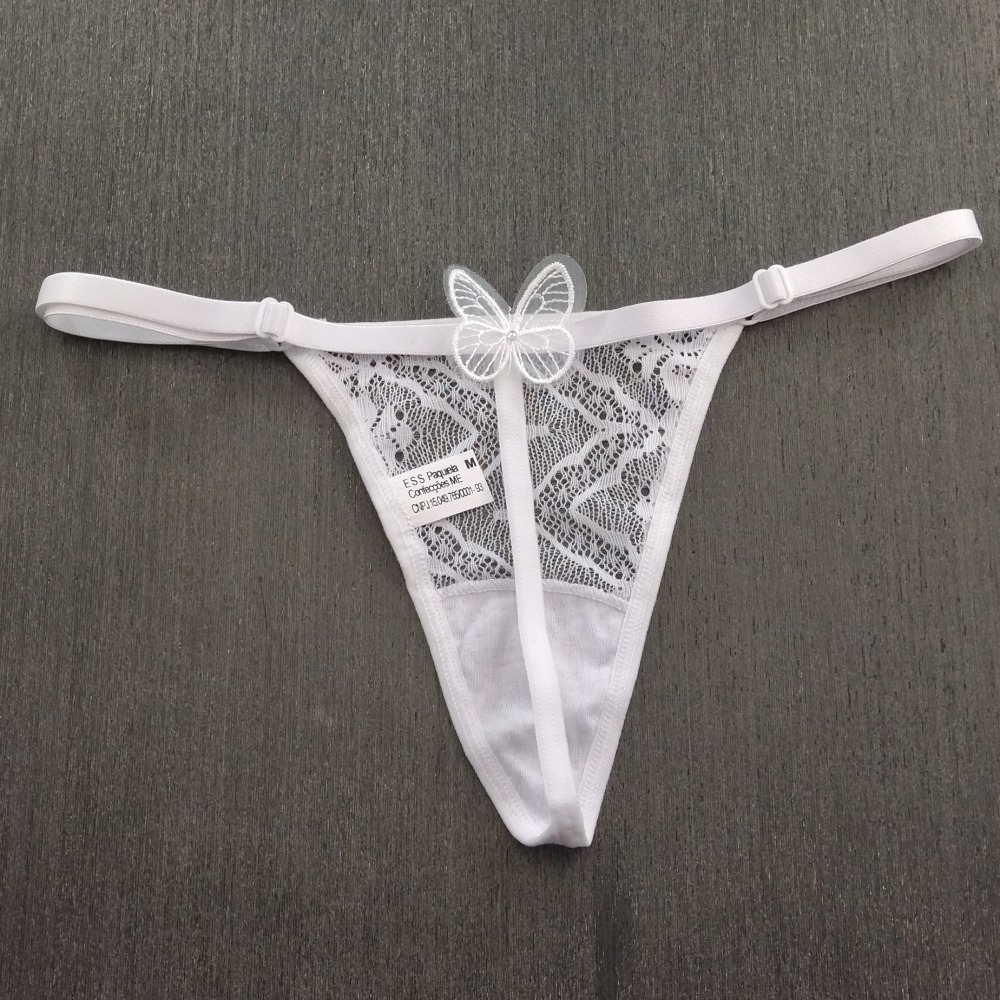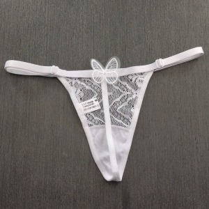 Tanga estilo fio dental, confeccionada com renda delicada e detalhes em transparência. Na parte frontal, a renda oferece um toque sensual e sofisticado. Na parte traseira, além da característica fina do fio, há um pequeno detalhe em forma de borboleta, que confere charme e elegância ao design. Os elásticos finos e ajustáveis nas laterais proporcionam conforto e valorizam o caimento no corpo.