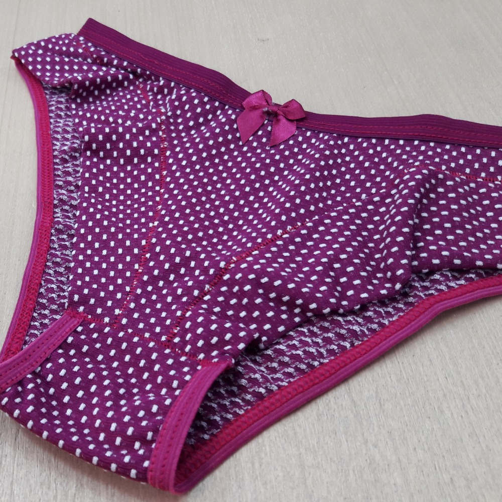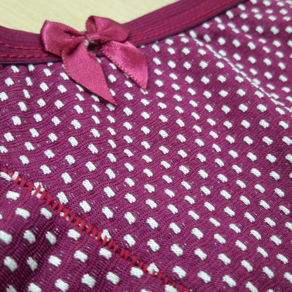 "A calcinha é pequena em relação ao sutiã e veio descosturada"