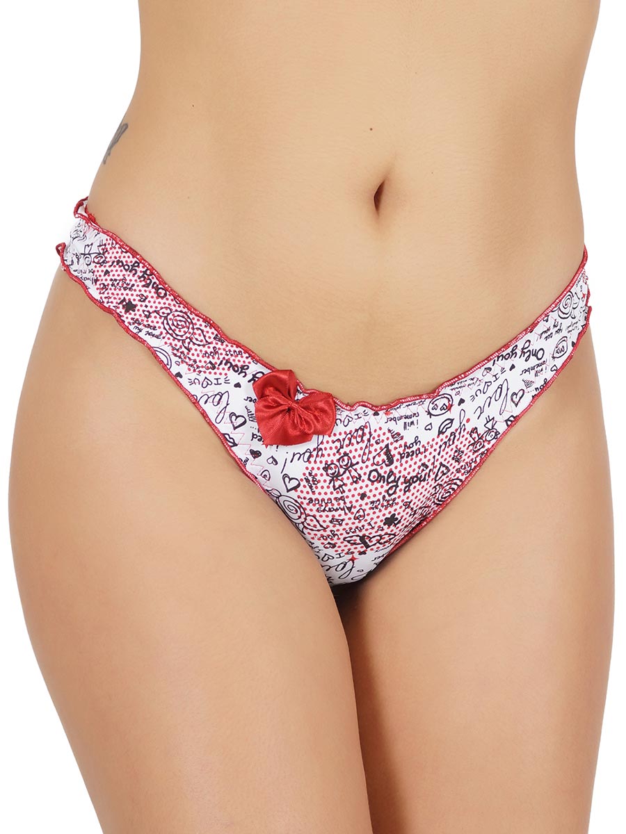Tanga confeccionada em microfibra de alta qualidade. Modelo super charmoso com as bordas levemente onduladas que dão um toque divertido à peça, além disso possui lindas estampas variadas e todas com lacinho de cetim na parte frontal.
