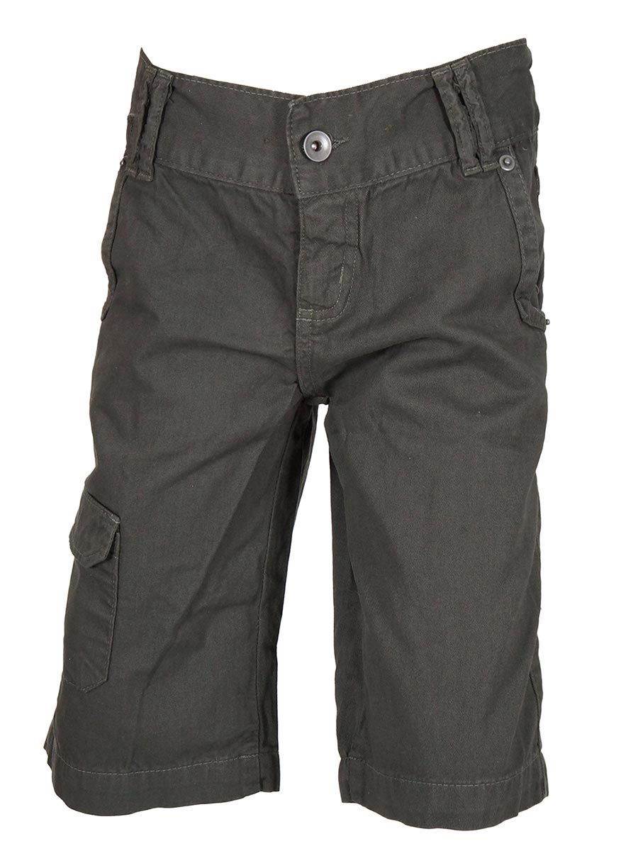 Bermuda infantil modelo cargo em brim, possui bolsos na parte frontal e lateral.