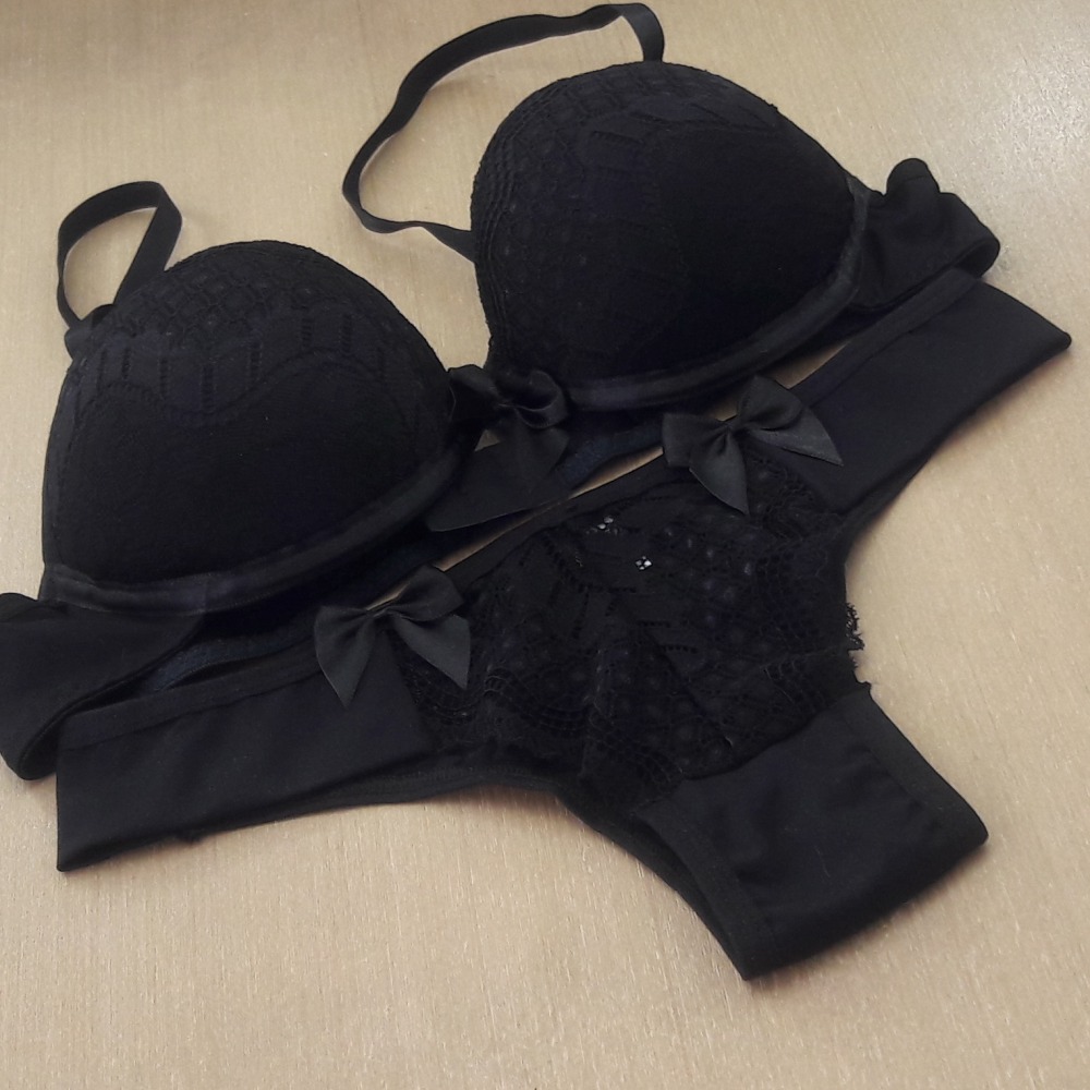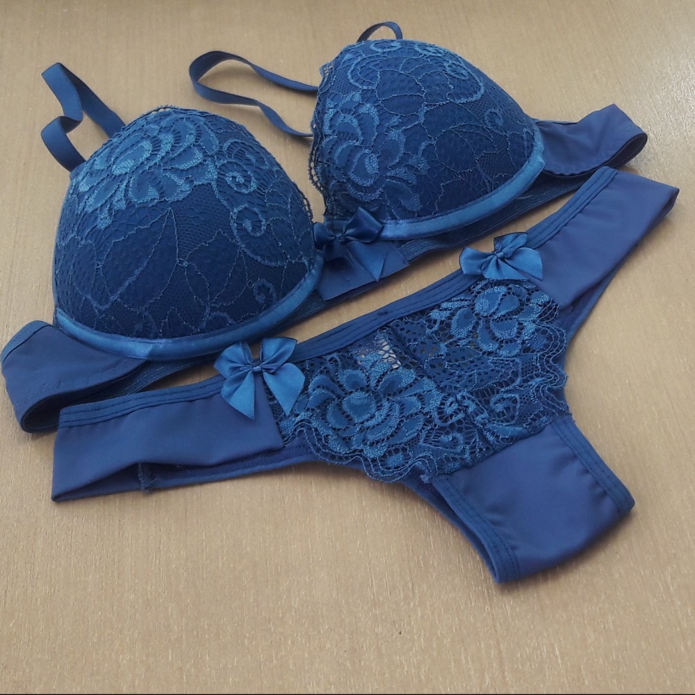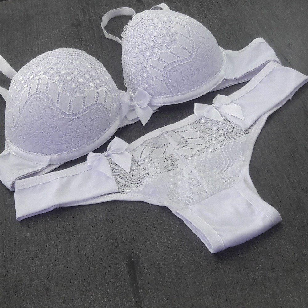 Conjunto com bojo confeccionado em microfibra lisa e renda. O produto possui uma modelagem atual e sofisticada, item ideal para momentos especiais. O sutiã possui aro para maior sustentação e segurança, além de um laço em cetim na parte central. A calcinha possui pala, detalhes em renda e laços em cetim.