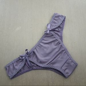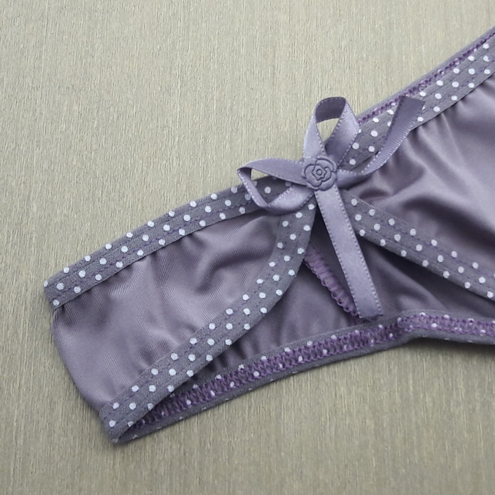 O charme da peça fica por conta dos dois laços de cetim e o viés em estampa de poá.