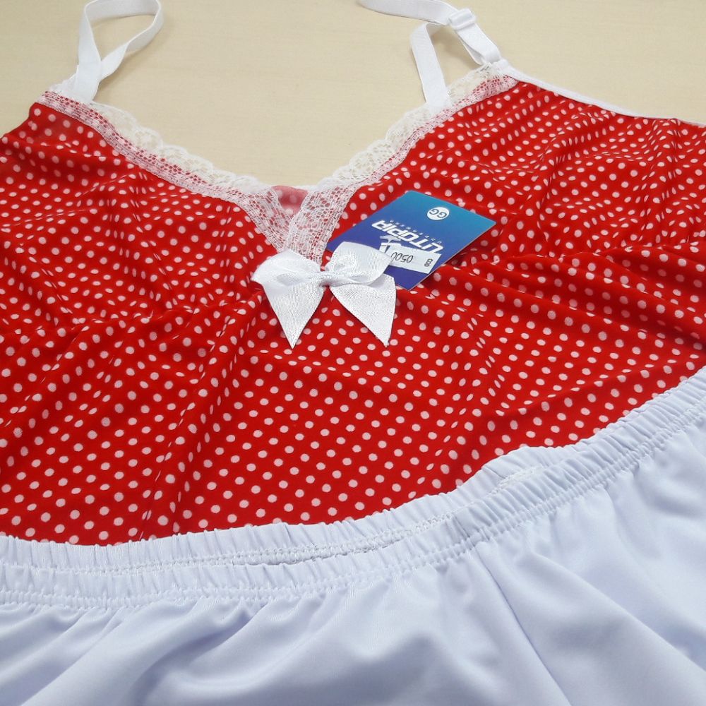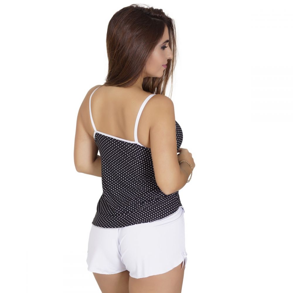 Confeccionado em tecido leve e confortável, o Baby Doll Grazi é composto por blusa sem bojo, alças fixas reguláveis e decote "V" em renda, com aplicação de laço de cetim no entremeio frontal.