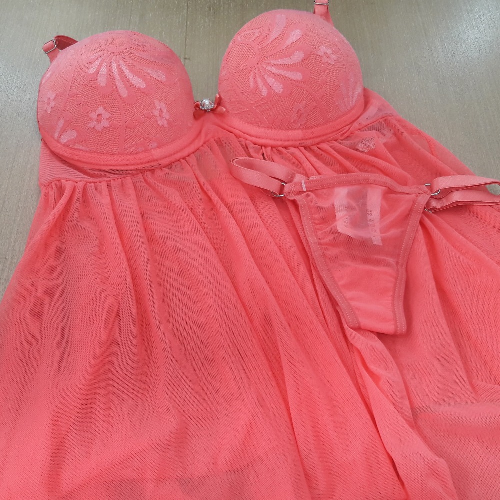 Camisola sensual confeccionada em tule e renda da mesma cor, sobrepondo o bojo bolha e fenda na parte frontal.