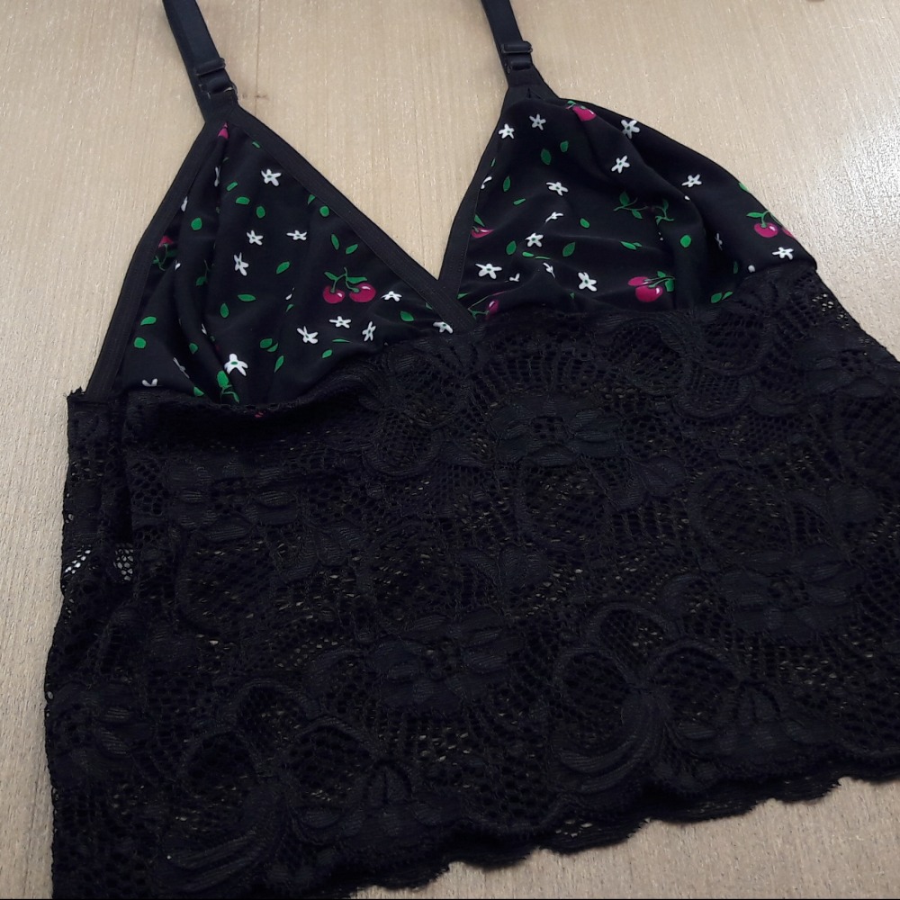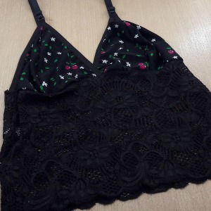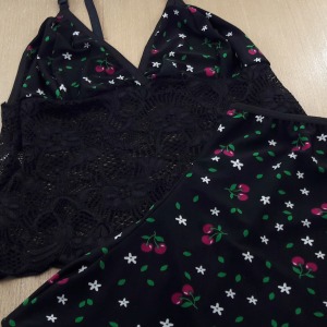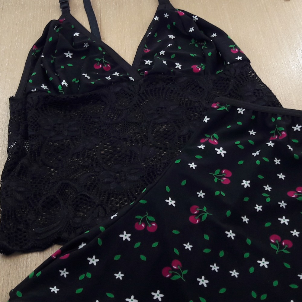 Composto por cropped sem bojo e renda, com alças ajustáveis. Short com modelagem moderna.