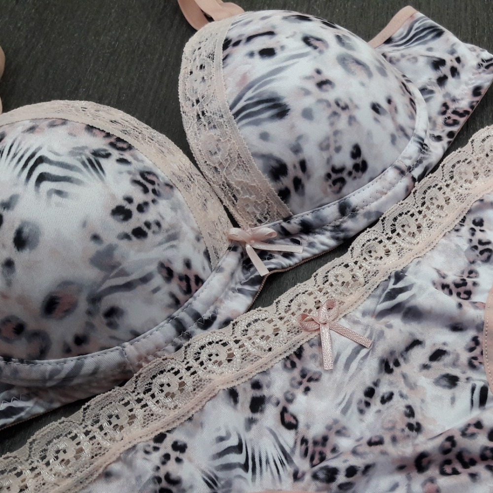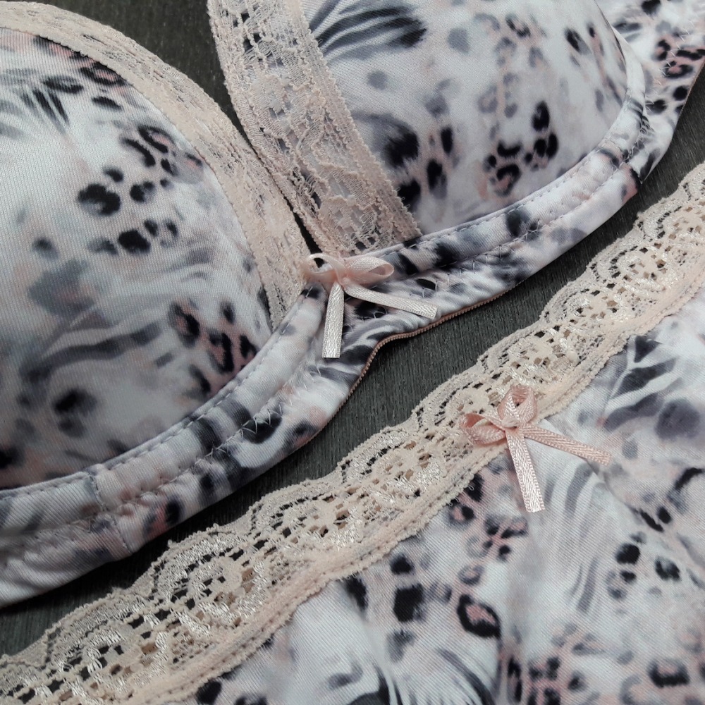 Confeccionada em tecido macio, altamente confortável, ideal para o dia-a-dia. Modelo composto de sutiã de bojo, alças ajustáveis, laço em cetim e aros de sustentação. A calcinha possui delicado laço de cetim e detalhes em renda.