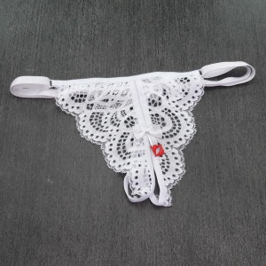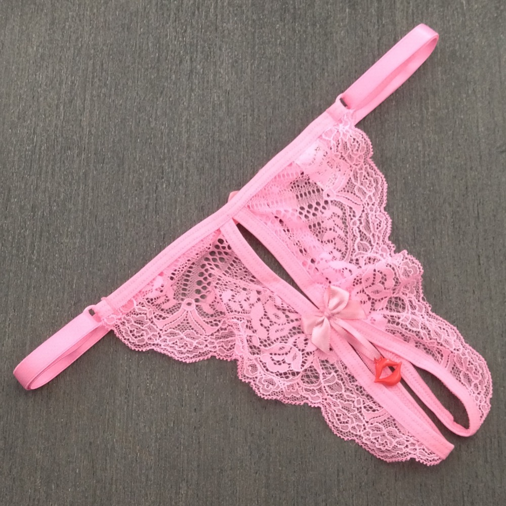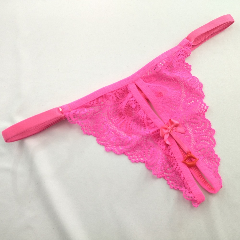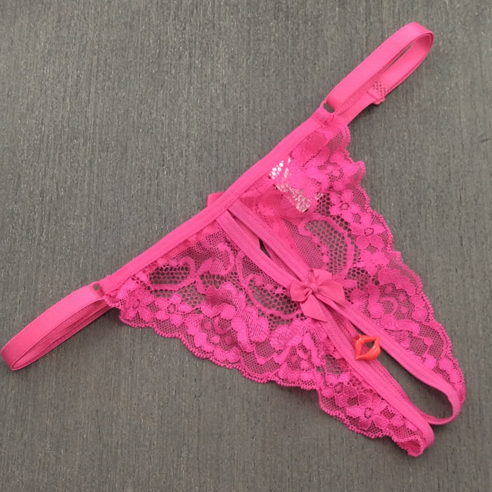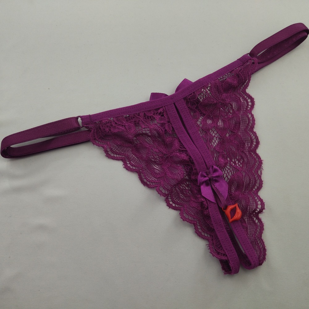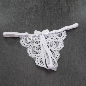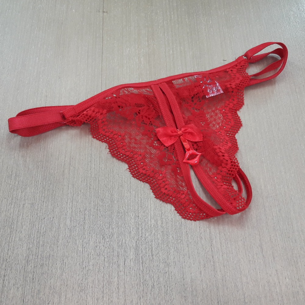 Tanga modelo fio dental revestida de renda. Produto super sensual, sofisticado e charmoso, peça altamente indicada para os momentos especiais. Sua modelagem apresenta pingente em boca, além disso, contém lindo laço cem cetim na parte posterior da peça. Possui laterais reguláveis.