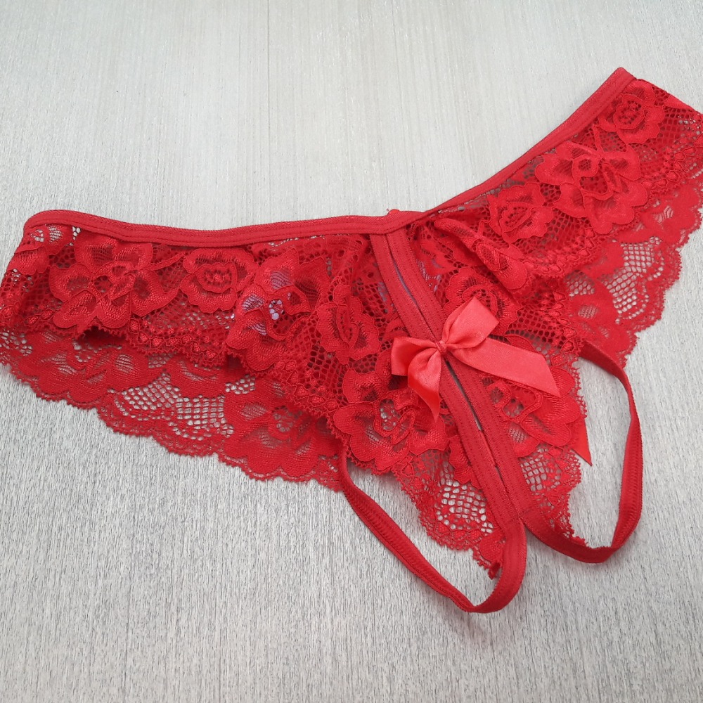 Tanga fio desenvolvida em renda e microfibra. Peça que se destaca por sua sensualidade. Modelo perfeito para momentos especiais. Produto possui a parte posterior vazada com lindos laços em cetim.