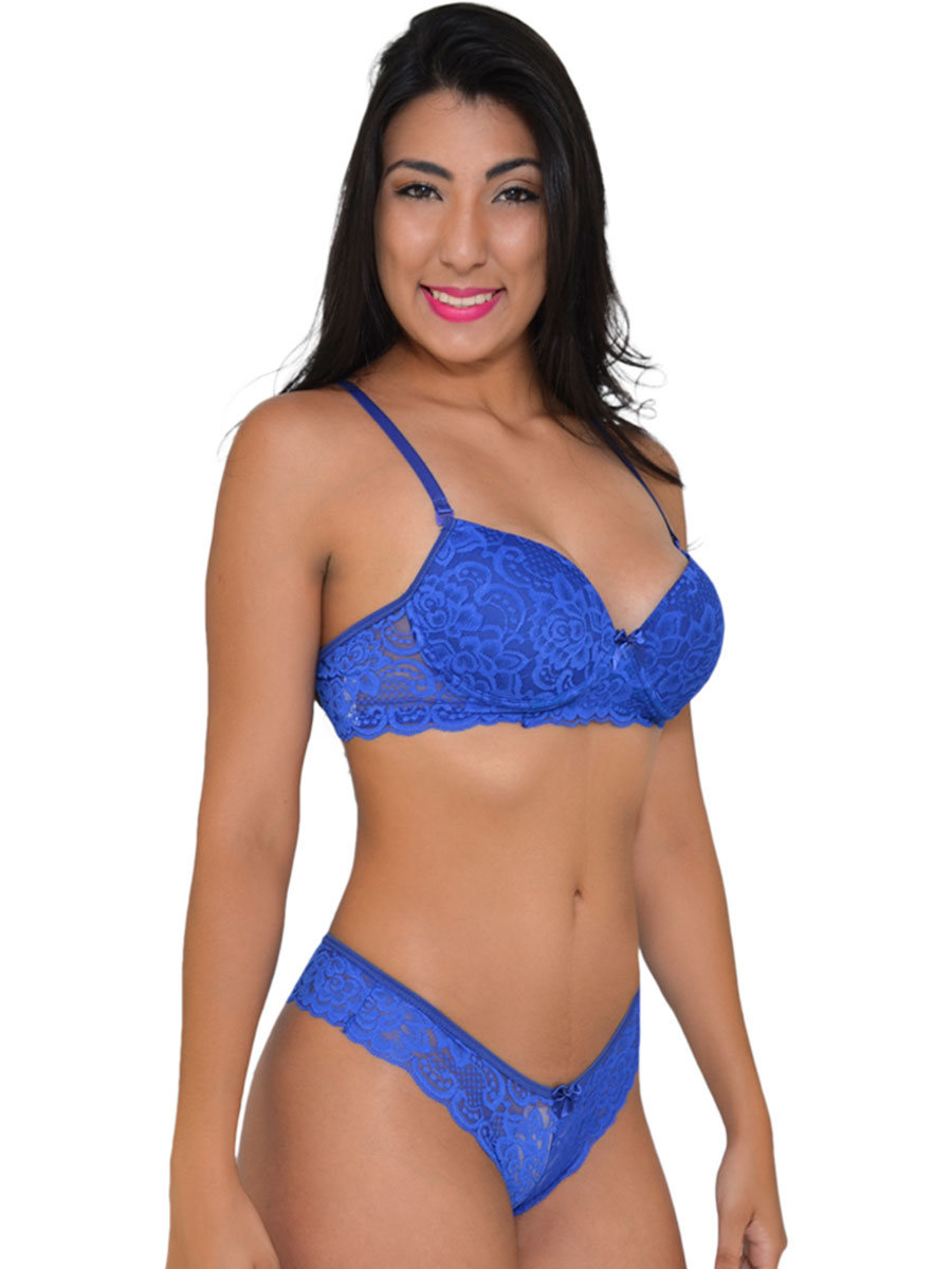 Lindo conjunto confeccionado em renda com contorno em microfibra.