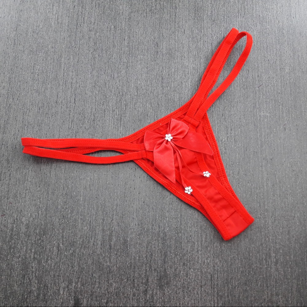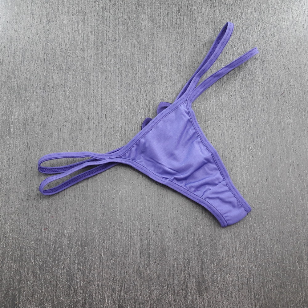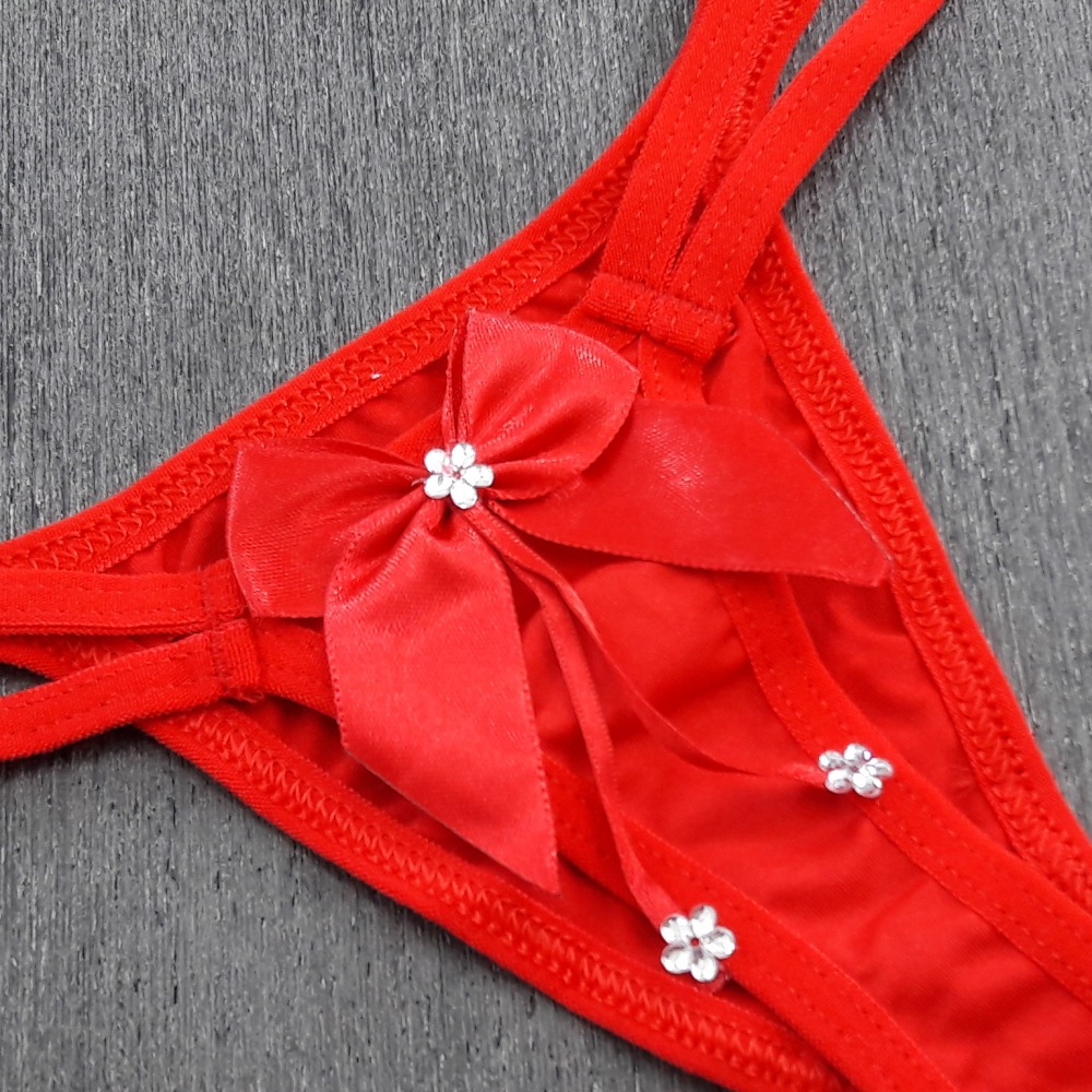Tanga fio confeccionada em poliamida lisa e estampada. Ideal para o dia a dia! Modelo possui tiras nas laterais e detalhe em laço de cetim na parte de trás da peça.