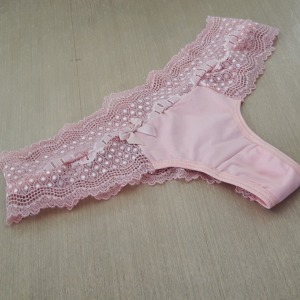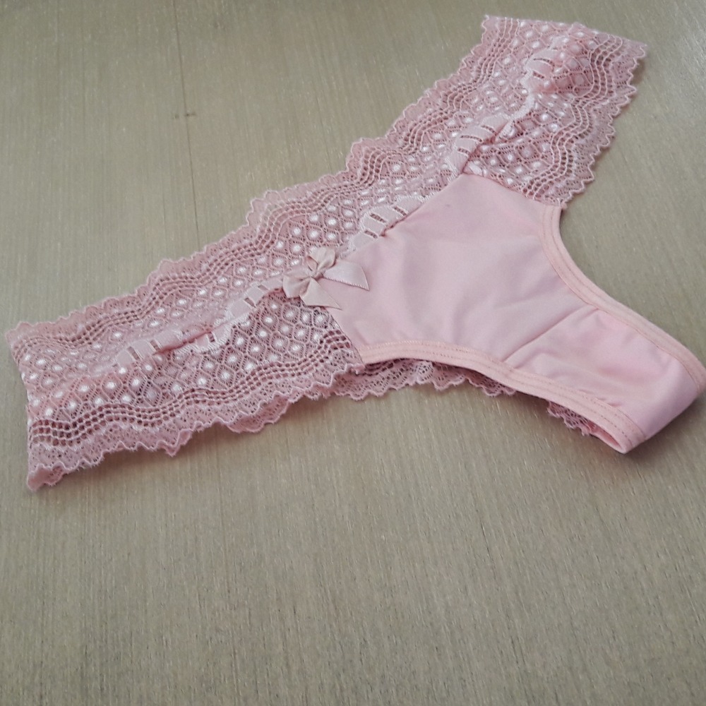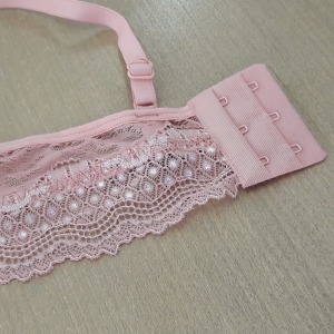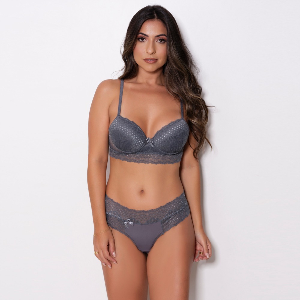 Composto por sutiã de bojo revestido em renda de poliamida e costado mais alongado, aro para maior conforto, alças fixas e reguláveis, fechamento traseiro por colchetes duplo. Calcinha modelo tanga, com frente em microfibra e parte de trás em renda. Detalhe em laço de cetim no decote do sutiã e lateral da calcinha.