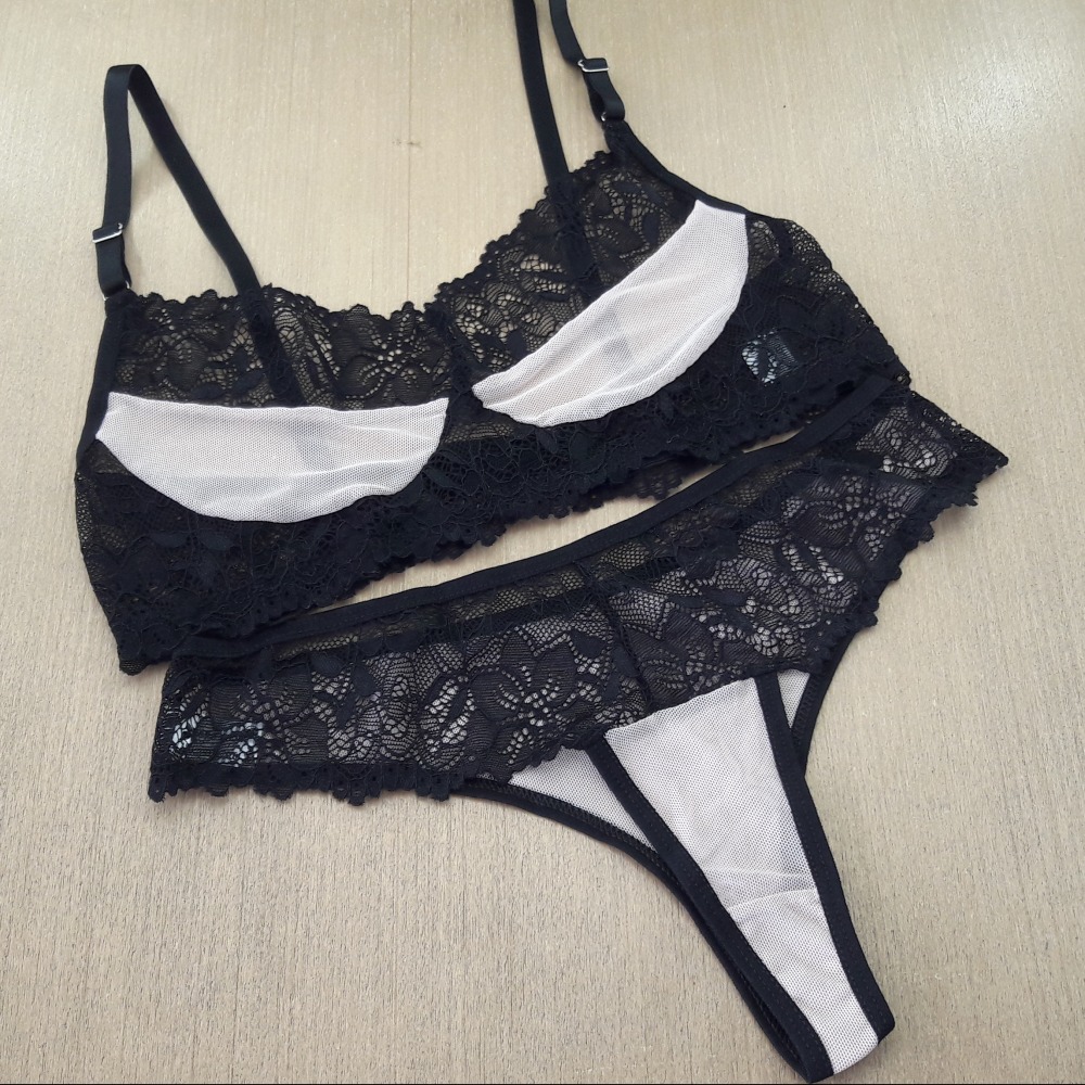 Lingerie produzida em renda de poliamida trabalhada e tule, possui transparência que torna a peça ainda mais sensual!