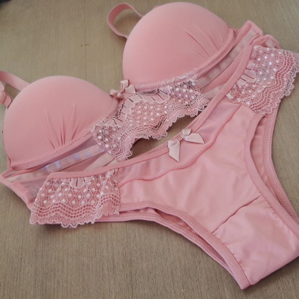 Sutiã possui bojo e alças com regulagens, pala mais larga em tule e renda na frente e poliamida nas costas. Calcinha com detalhe em renda e tule, com lindo laço de cetim no entremeio frontal.