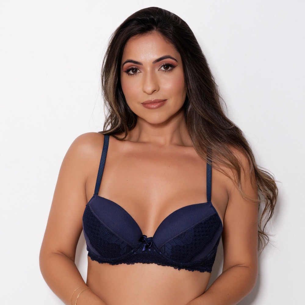 Sutiã com bojo revestido em renda de poliamida e tule. O modelo possui pala inteira em renda, alças com regulagens e fechamento traseiro por colchetes. Ideal para quem busca conforto, mas não dispensa sensualidade!