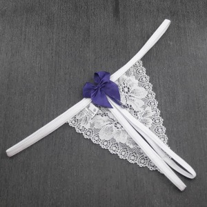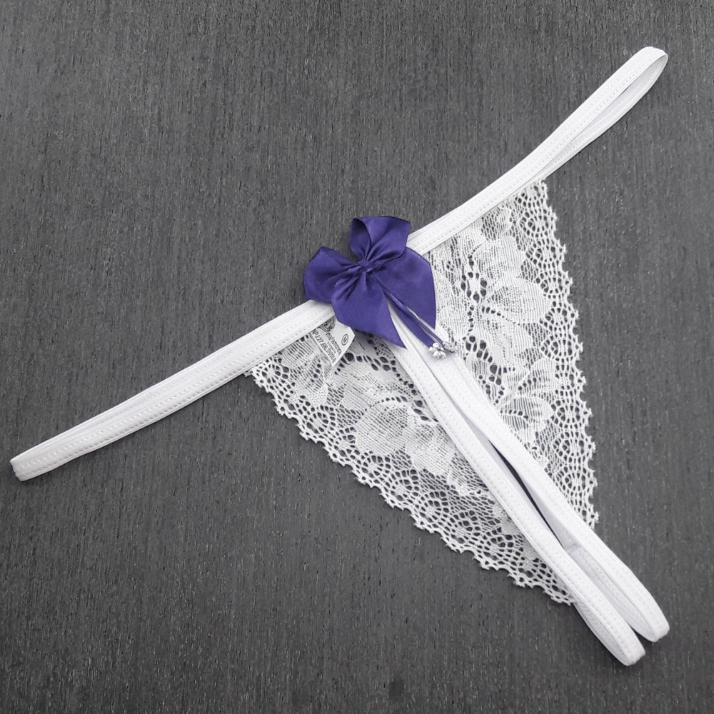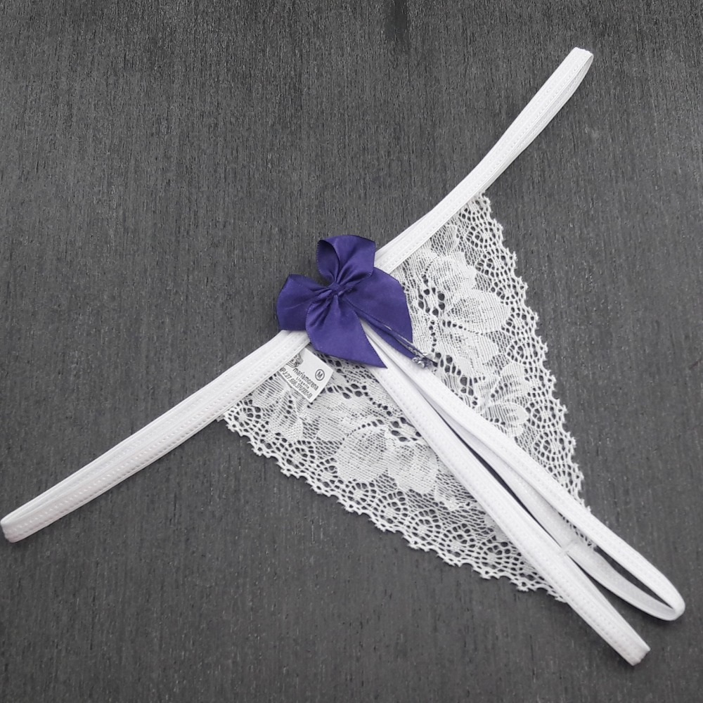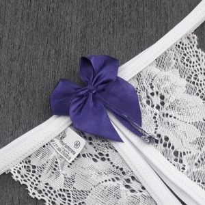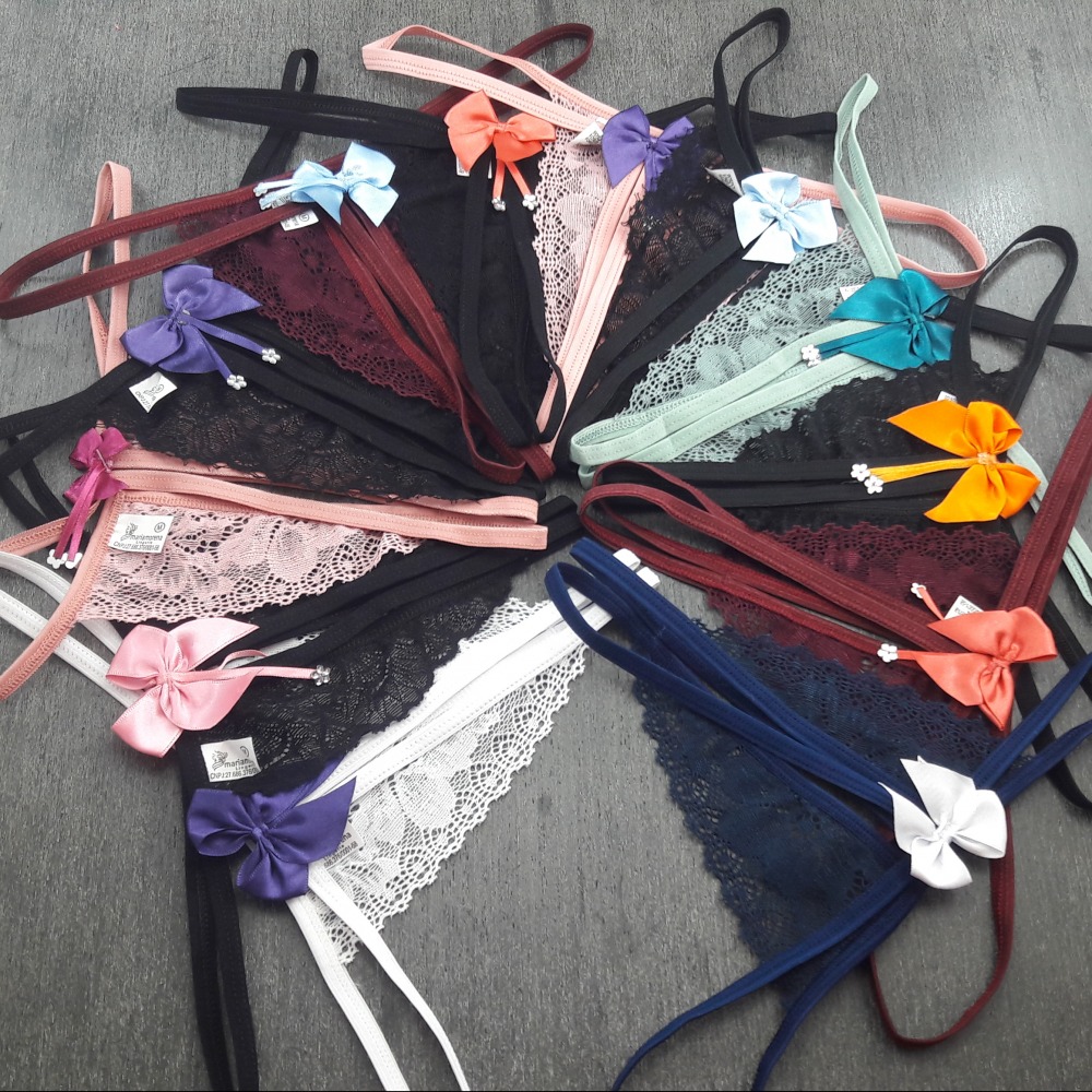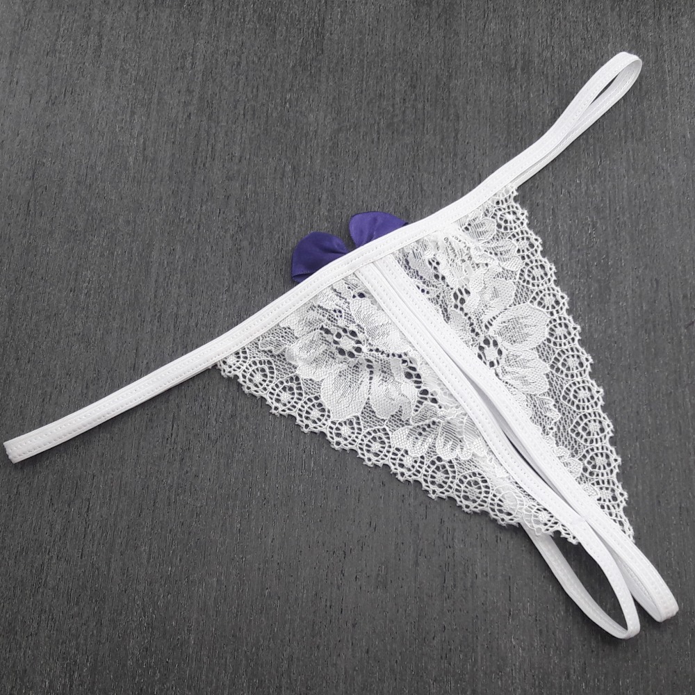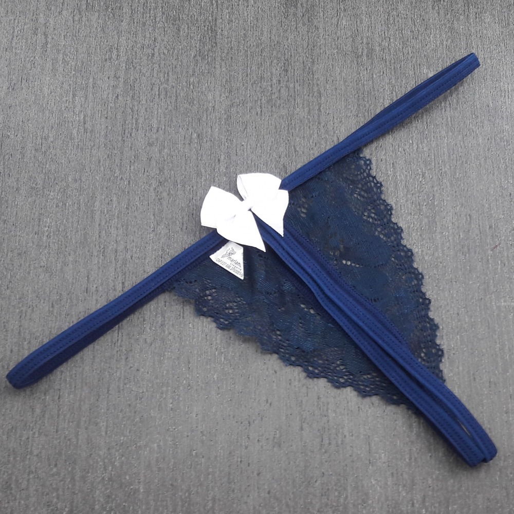 Tanga Eva confeccionada em renda com acabamento em viés. Para apimentar a relação, possui abertura frontal e finaliza o fio com laço de cetim nas costas. É a peça chave para mulheres que adoram inovar, sem a necessidade de retirá-la na hora das brincadeiras e excitação.