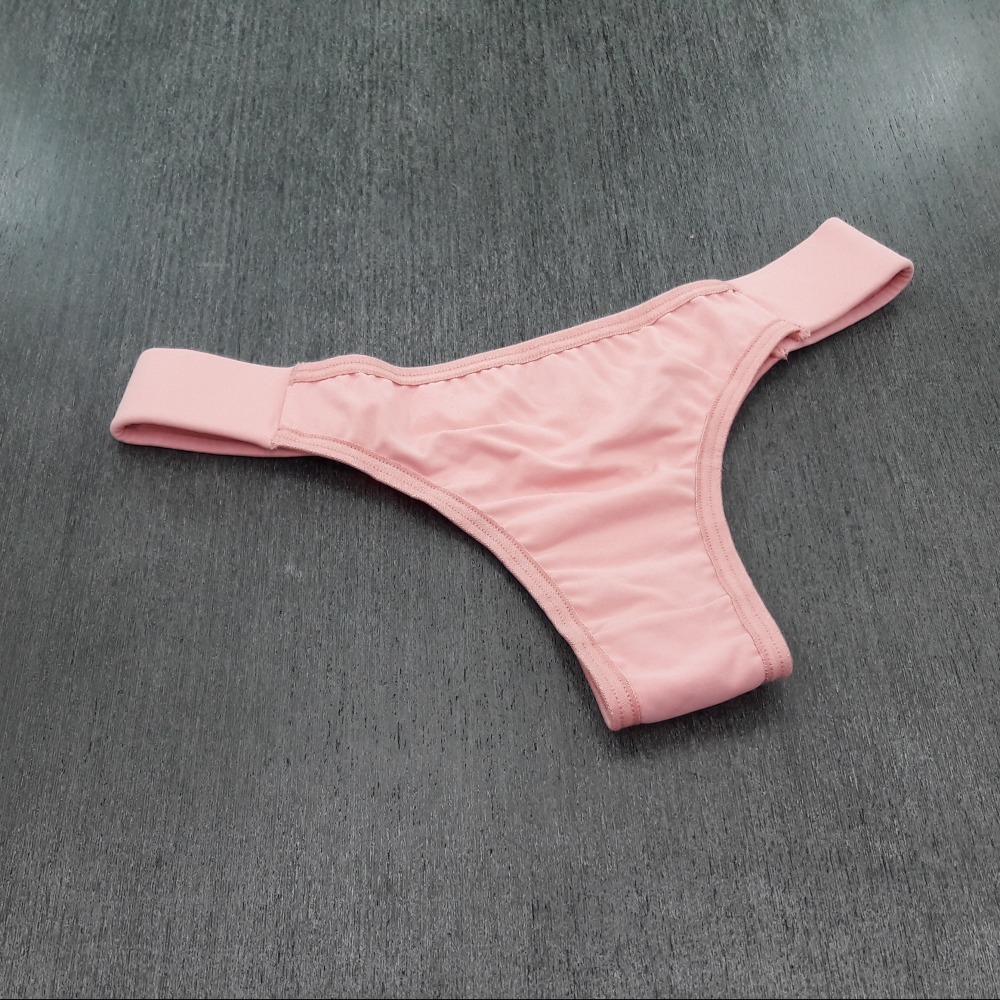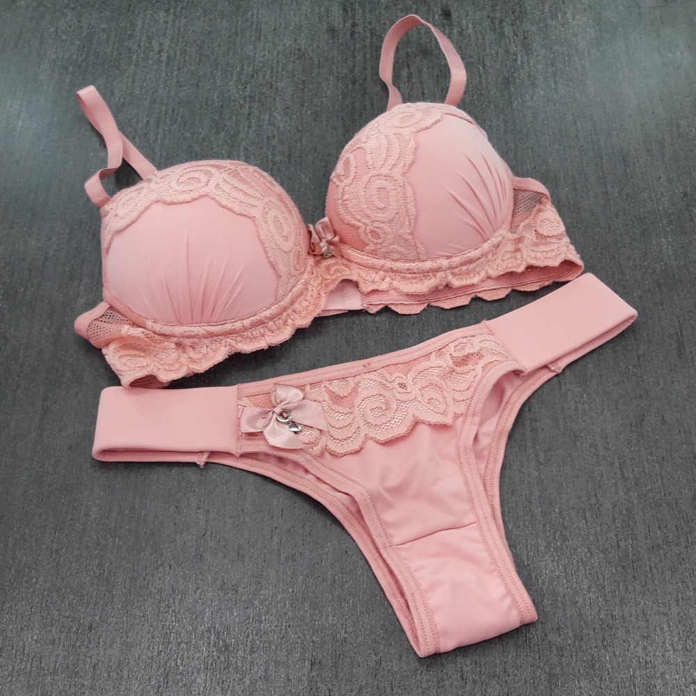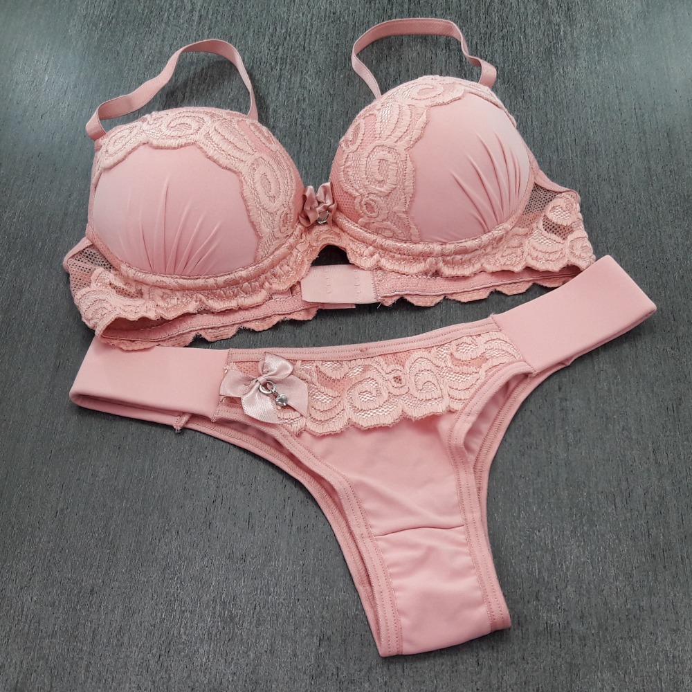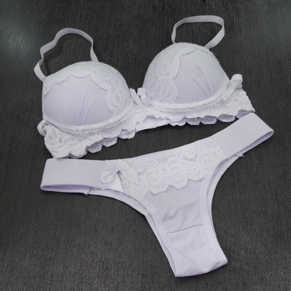 Possui bojo a aro de sustentação, para melhor acomodação, alças fixas e reguláveis, para se ajustar melhor ao corpo e fechamento traseiro através de colchetes com dois níveis de regulagem. Aplicação de laço de cetim e pingente no entremeio frontal.