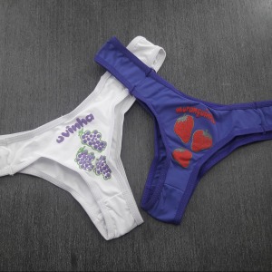 Tanga fio desenvolvida em poliamida com detalhe estampado de uma frutinha nas costas e forro 100% algodão. Possui detalhe em lacinhos de cetim na frente. Modelo sensual e confortável, ideal para qualquer ocasião!