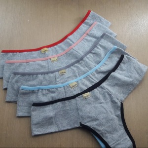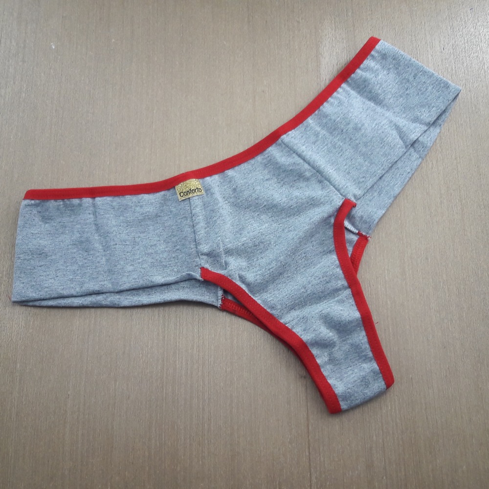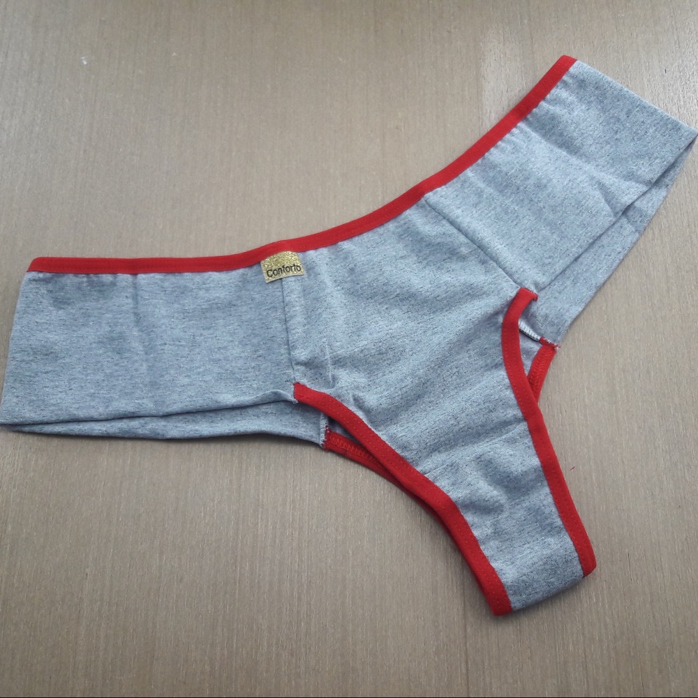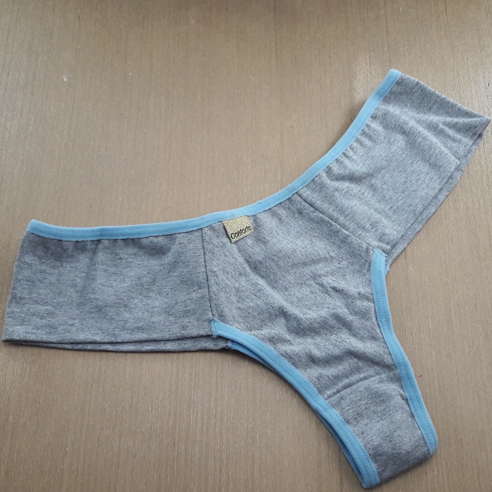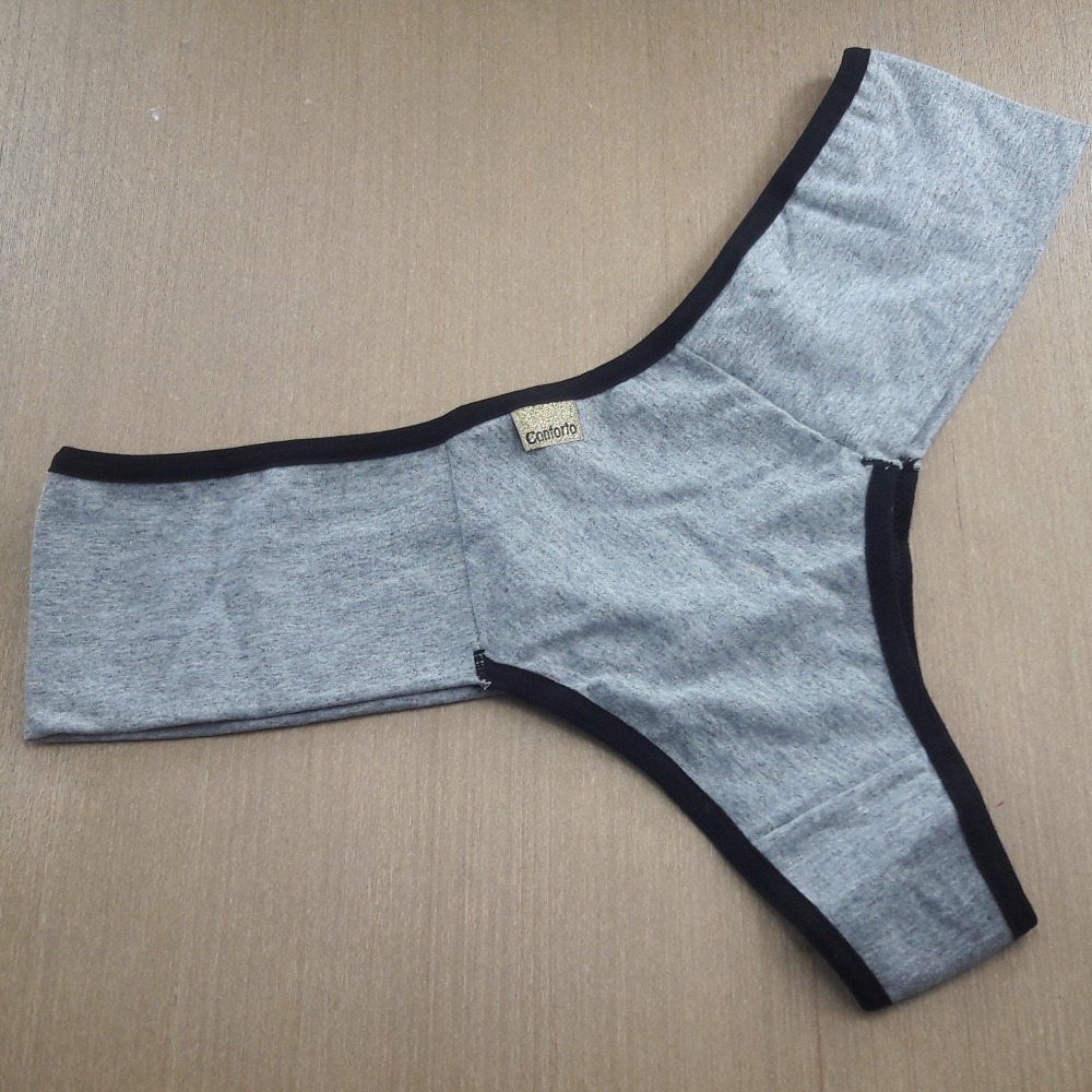 Tanga com costas cavada e lateral dupla, ideal para que busca conforto no o dia a dia! Confeccionada em tecido de algodão mescla com viés colorido e forro 100% algodão.