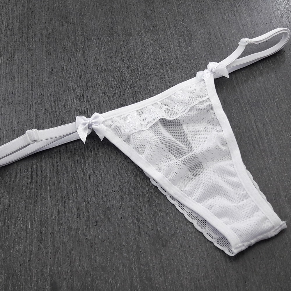 Uma calcinha que tem charme, conforto e sensualidade a flor da pele. Essa peça dispensa apresentações. Desenvolvida em tule, com laterais reguláveis que permite ajuste na cintura e detalhe em renda vazada nas costas fazendo o formato da calcinha.