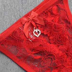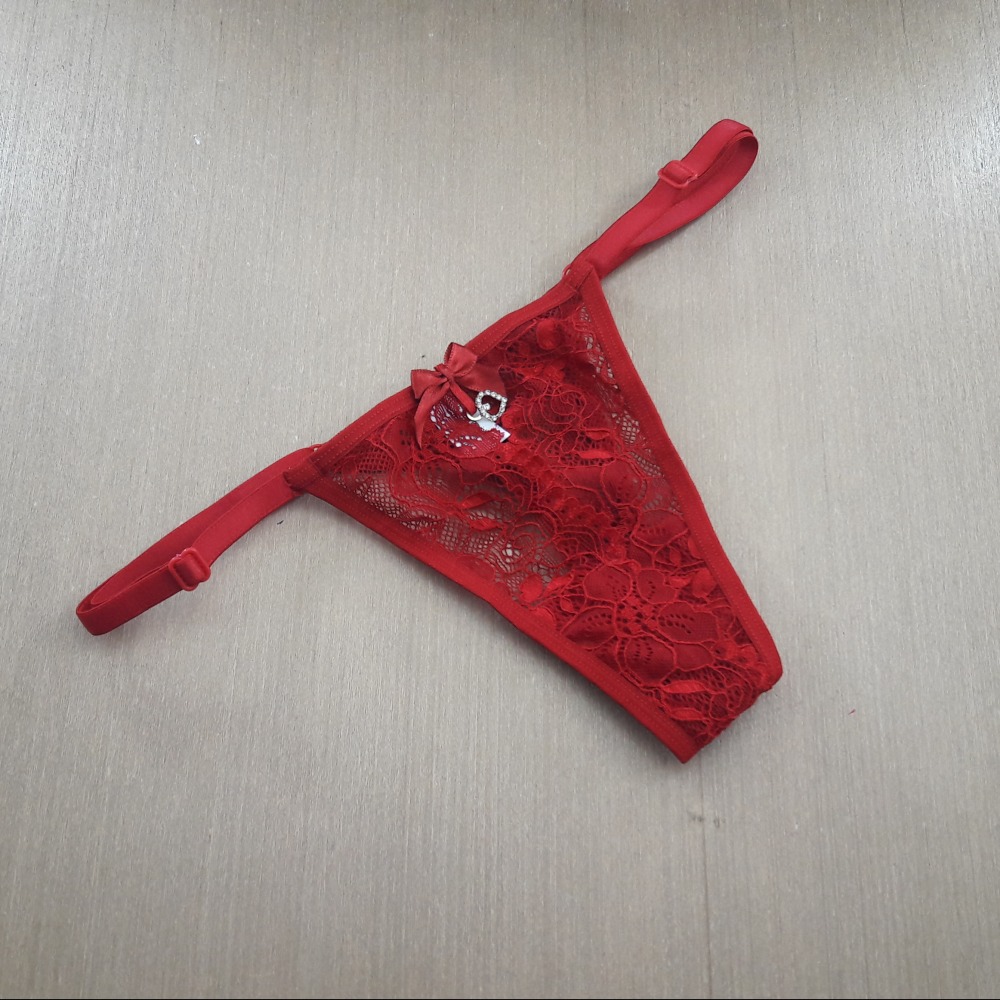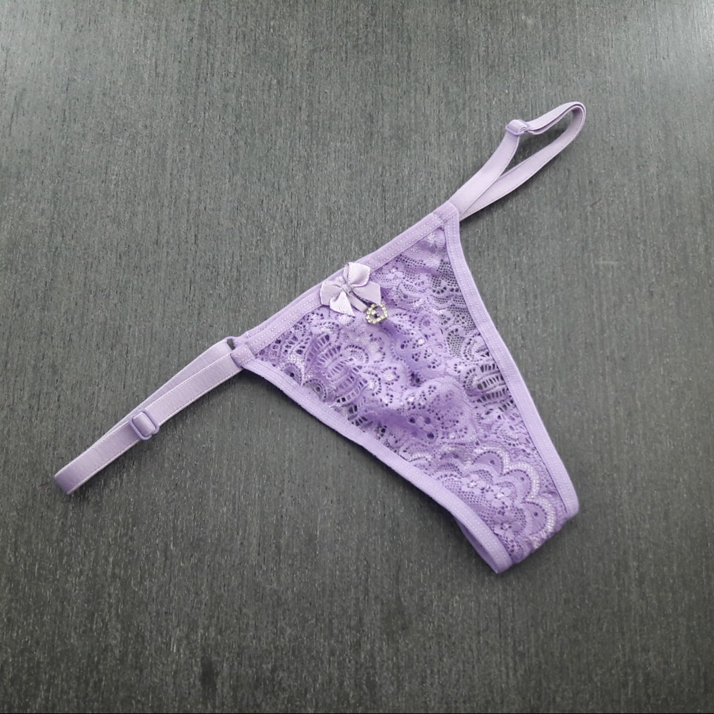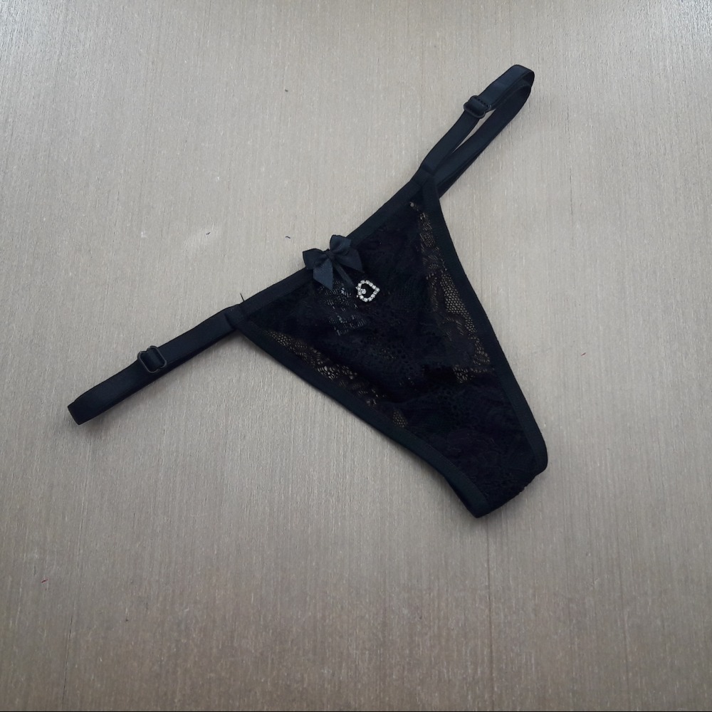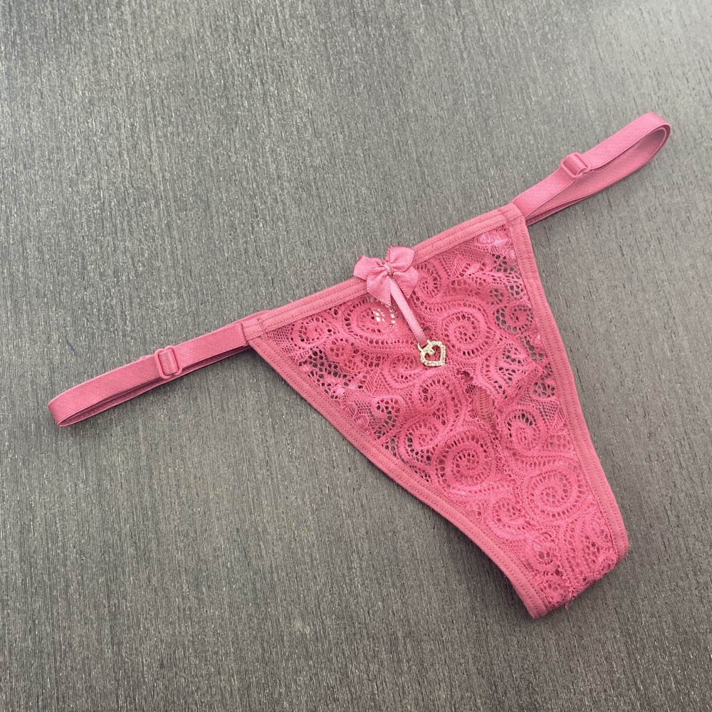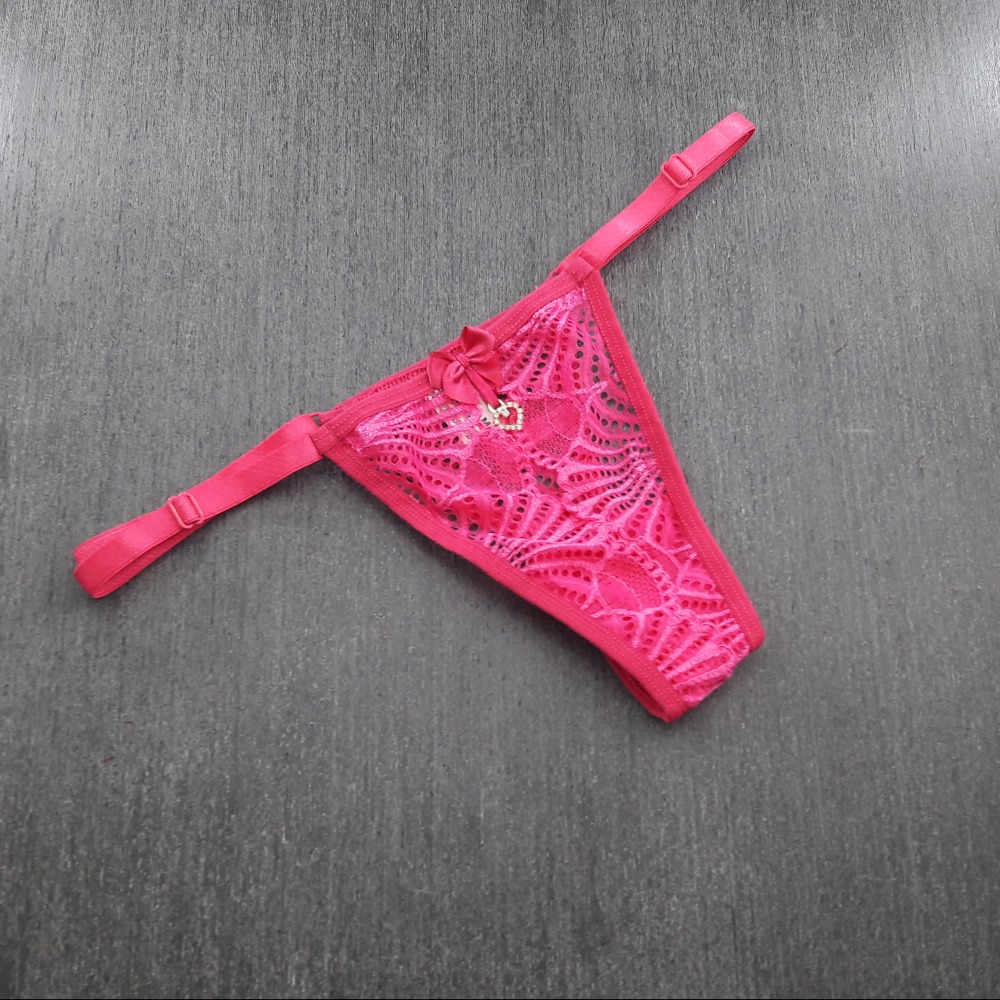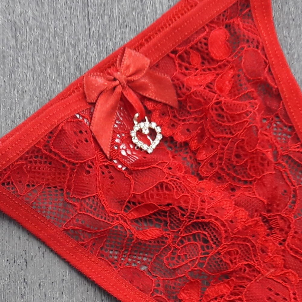 Confeccionada em renda e regulagem na cintura, essa é uma lingerie sexy e romântica, um charme com esse pingente de strass em formato de coração e abertura na frente. Uma peça para quem gosta de usar calcinha fio dental.