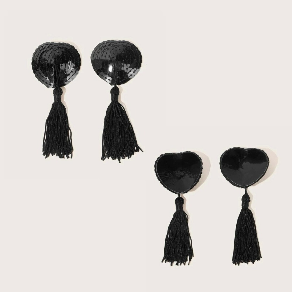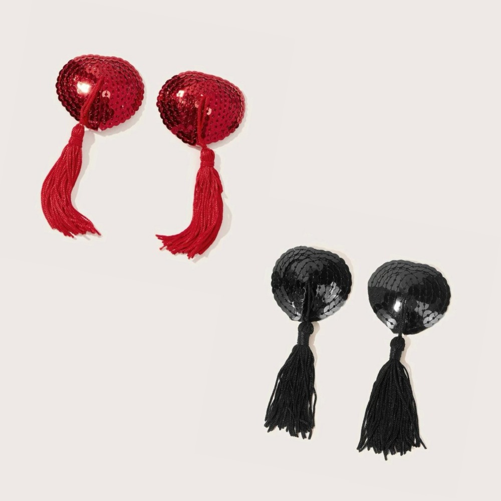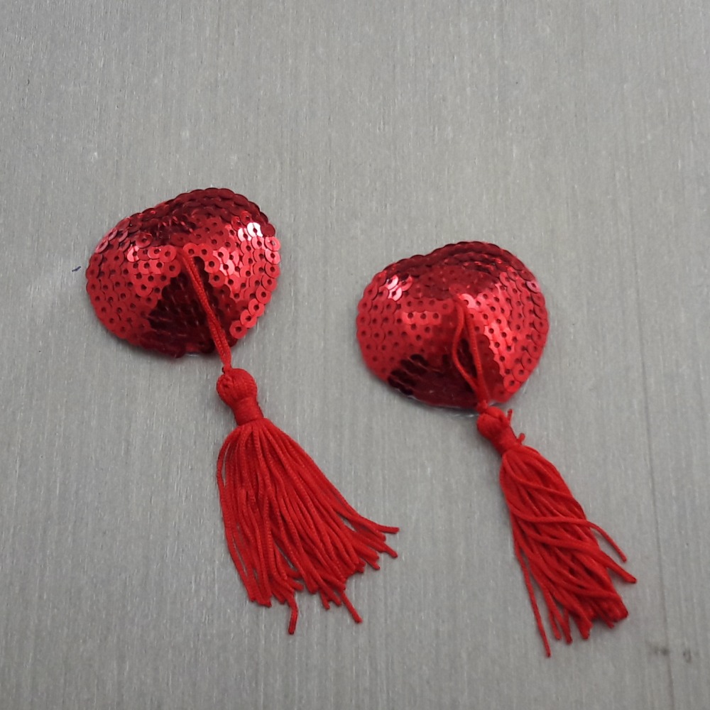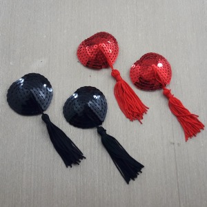 Modelo tamanho único feito em tecido e coberto com lantejoulas, possui pompom pendurado, cola na parte de dentro da peça que adere a pele.