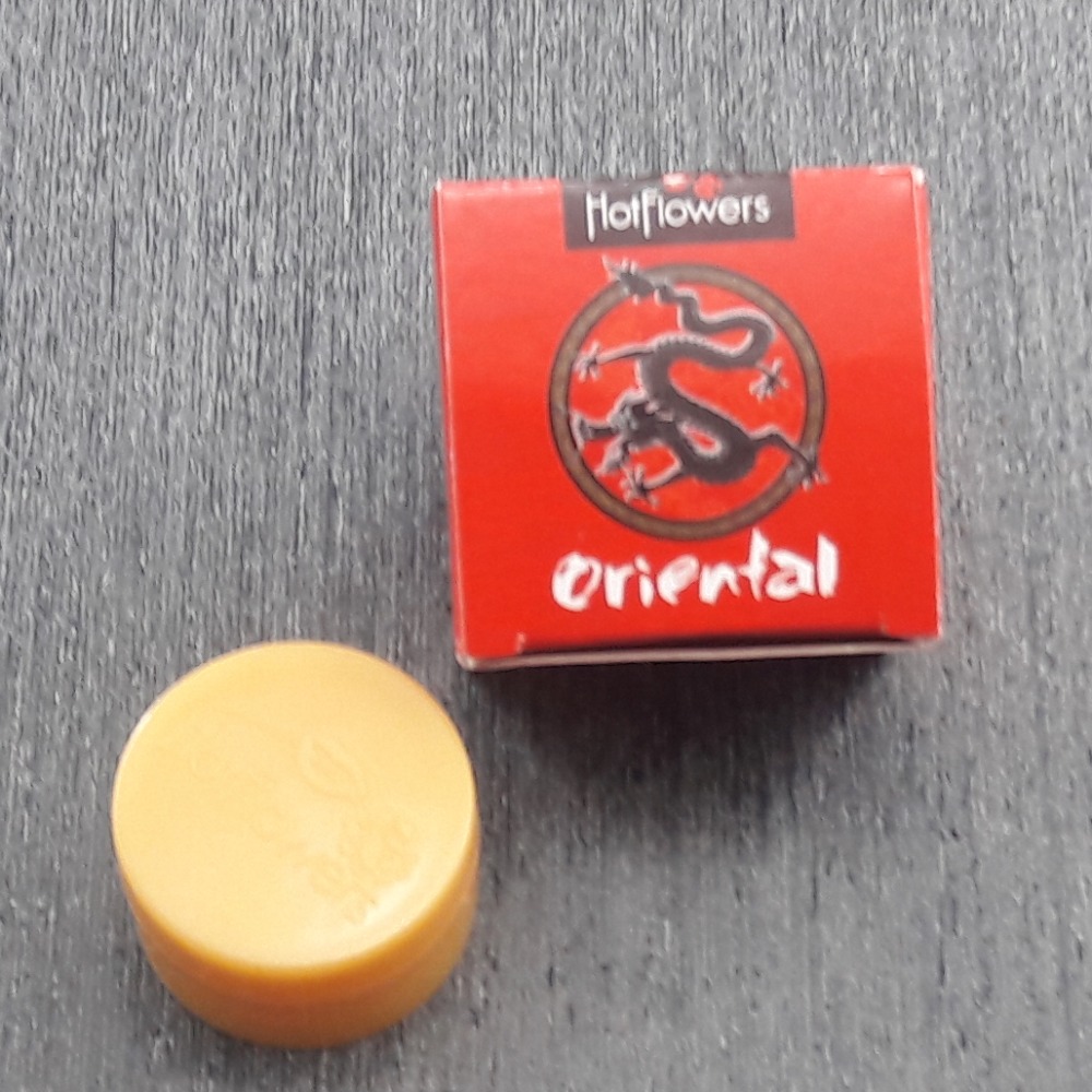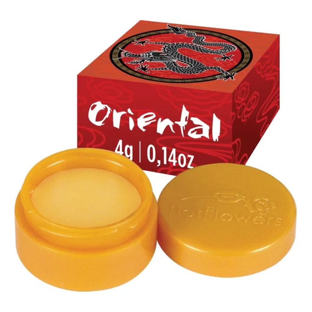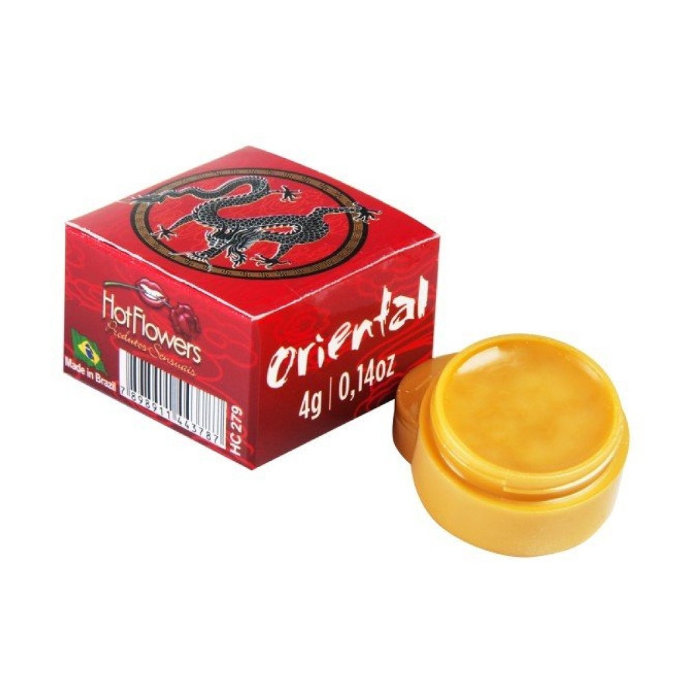 Popularmente conhecido como Pomadinha Chinesa, a Pomada Oriental da Hot Flowers é um produto unissex que reúne os segredos da cosmética oriental que aumenta o desejo, provocando uma sensação de aquecimento e refrescância.