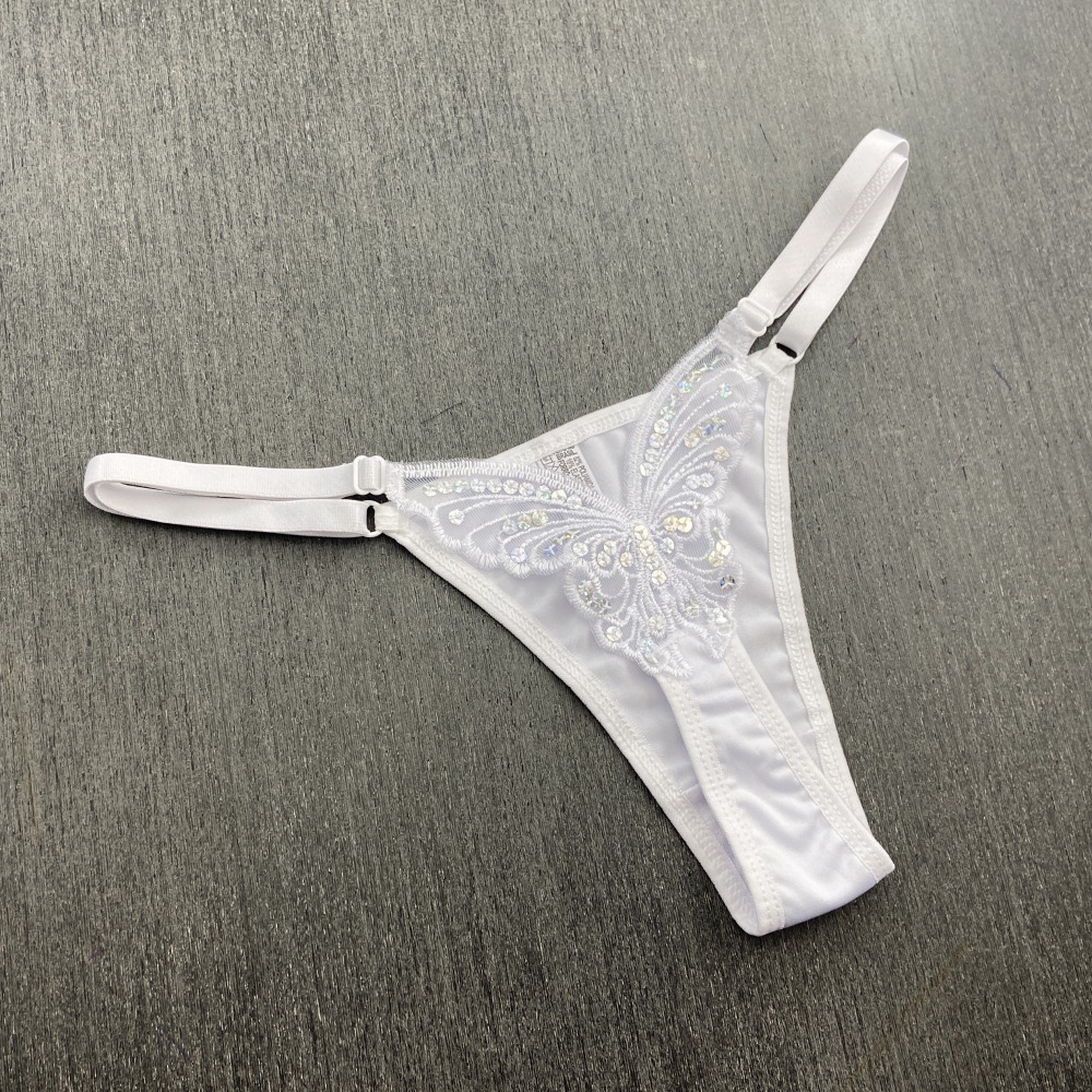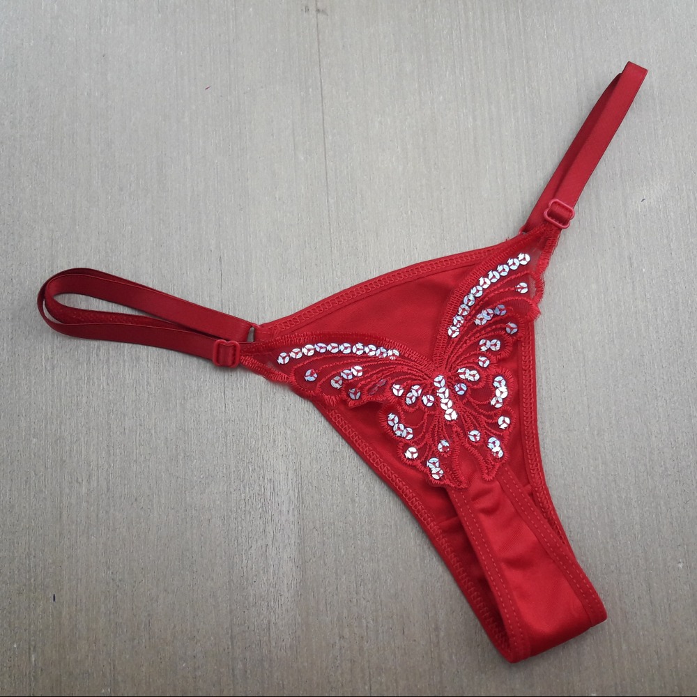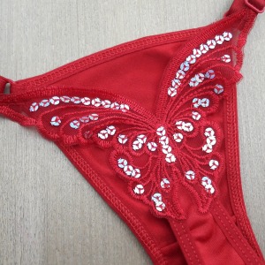 Peça sensual indicada para momentos especiais! Calcinha confeccionada em microfibra na parte frontal com regulagem nas laterais para melhor ajuste ao corpo. Possui detalhe em bordado formato borboleta na parte traseira com lantejoulas e forro 100% algodão.