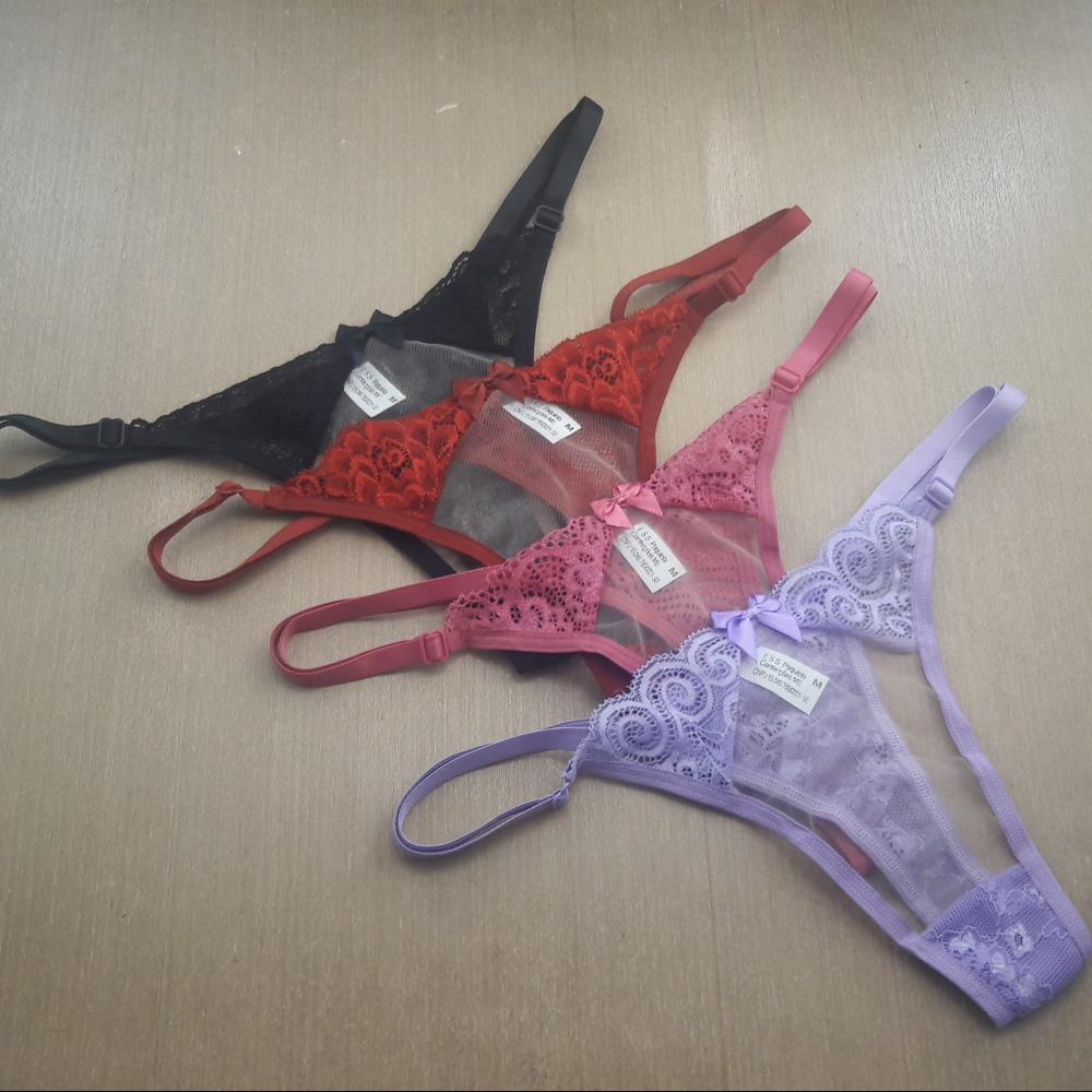 A tanga modelo fio, possui frente com transparência, costas em renda e forro 100% algodão.