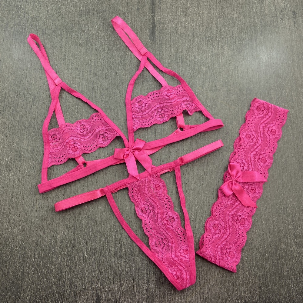 Conjunto confeccionado em renda e viés de microfibra, possui ajuste de medidas na cintura, no busto e nas alças. Na hora da relação à dois, deixe a imaginação fluir e seja ousada com esse conjunto que é um convite ao Amor.