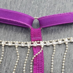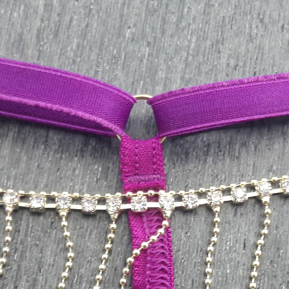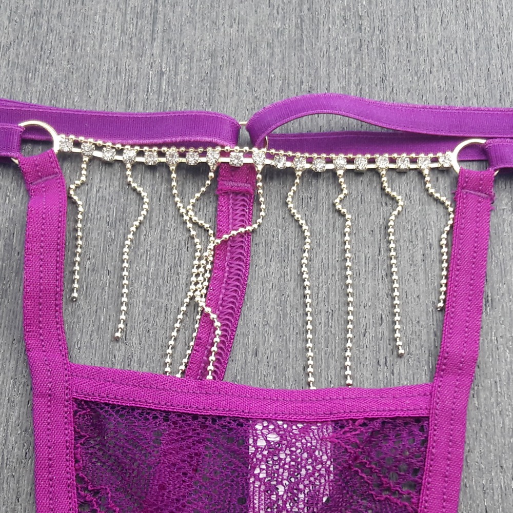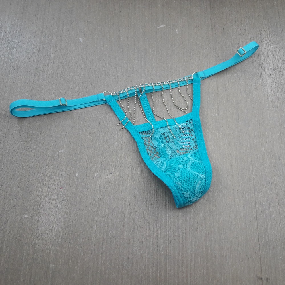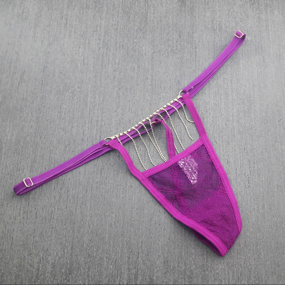 Tanga Odalisca é confeccionada em renda, viés de microfibra e alças com regulagem para ajustar a cintura. Uma calcinha fio dental sexy e luxuosa com bijuteria em Strass e regulagem em dourado.