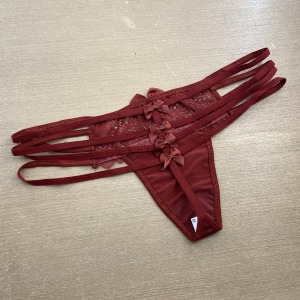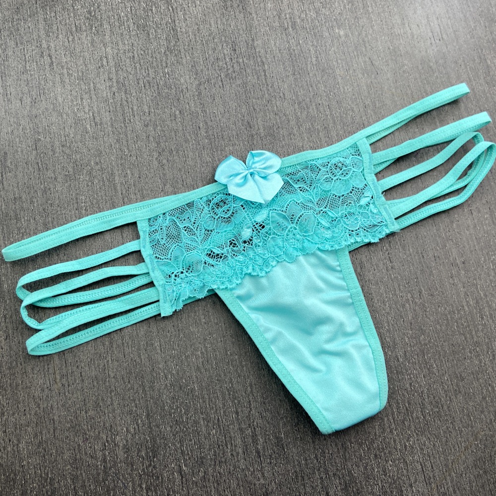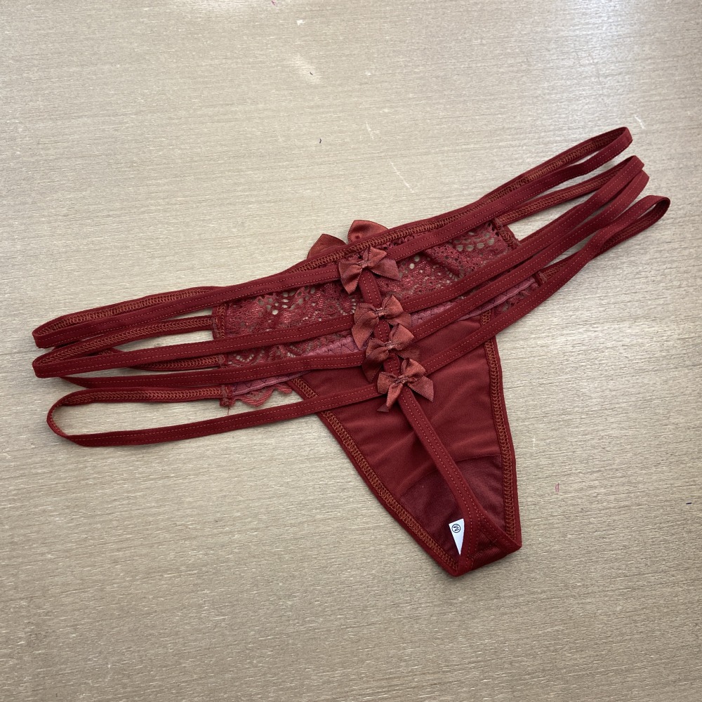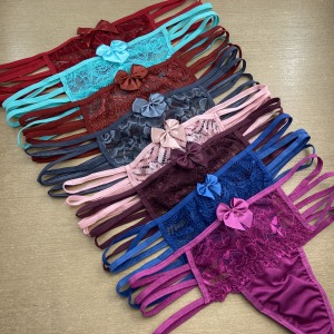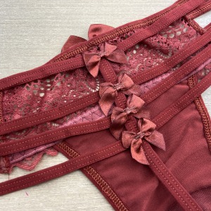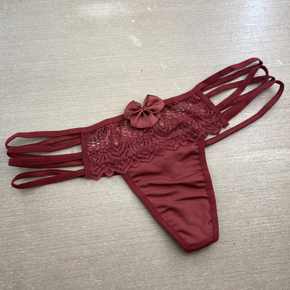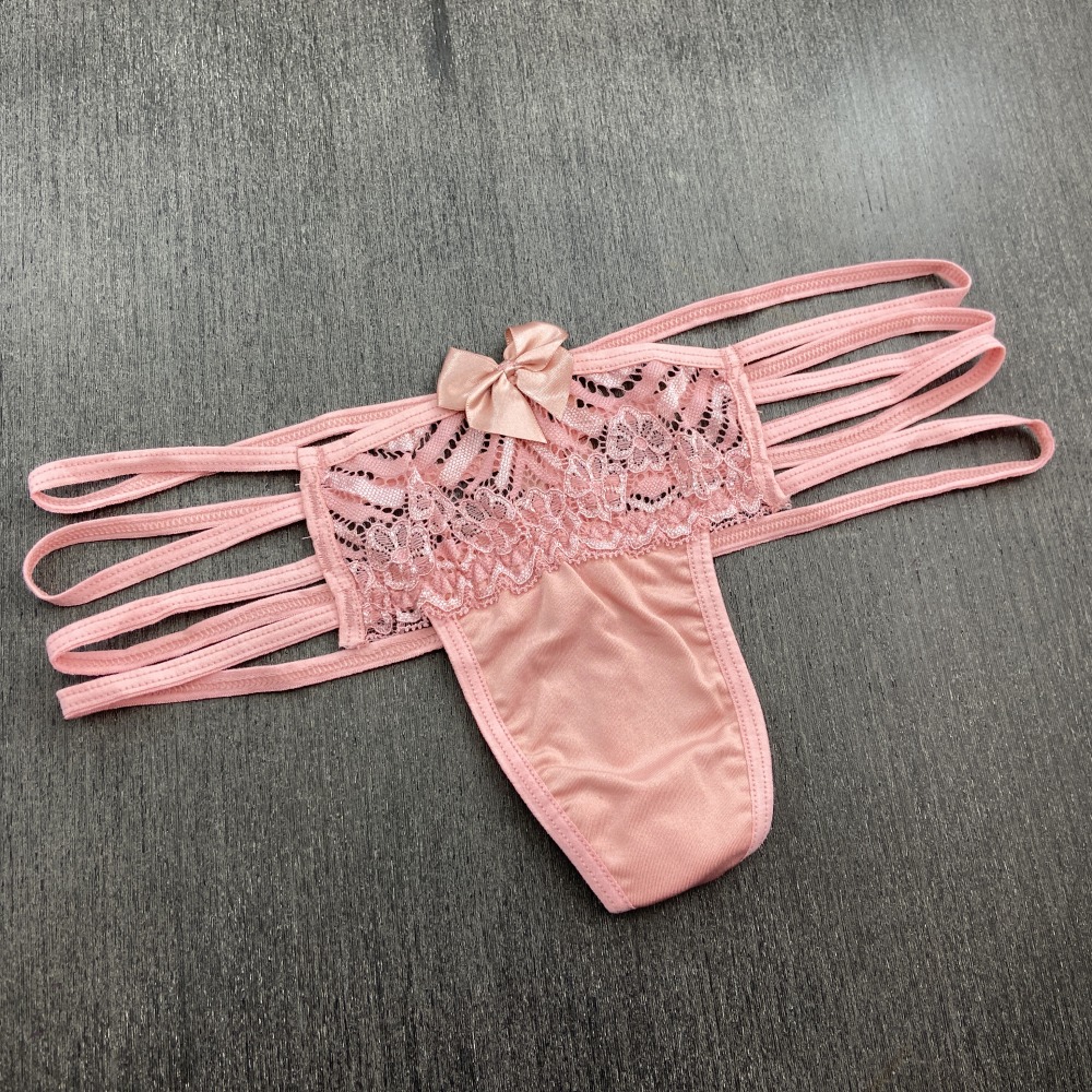 Tanga modelo fio dental desenvolvida em tecido romantic com recorte em renda. Modelo sensual com as laterais em tiras. Os laços em cetim na parte traseira atribui delicadeza ao produto. Você vai amar!