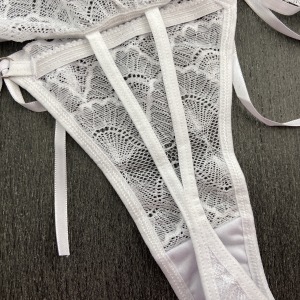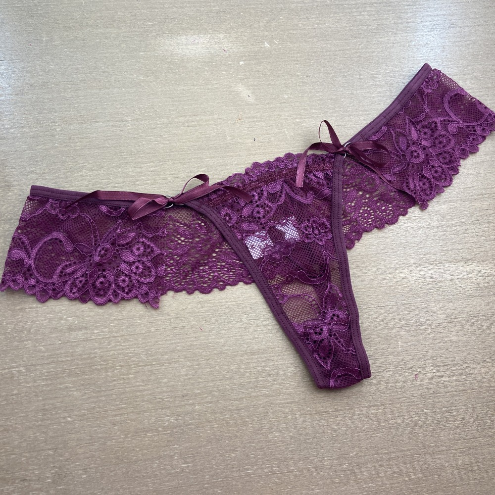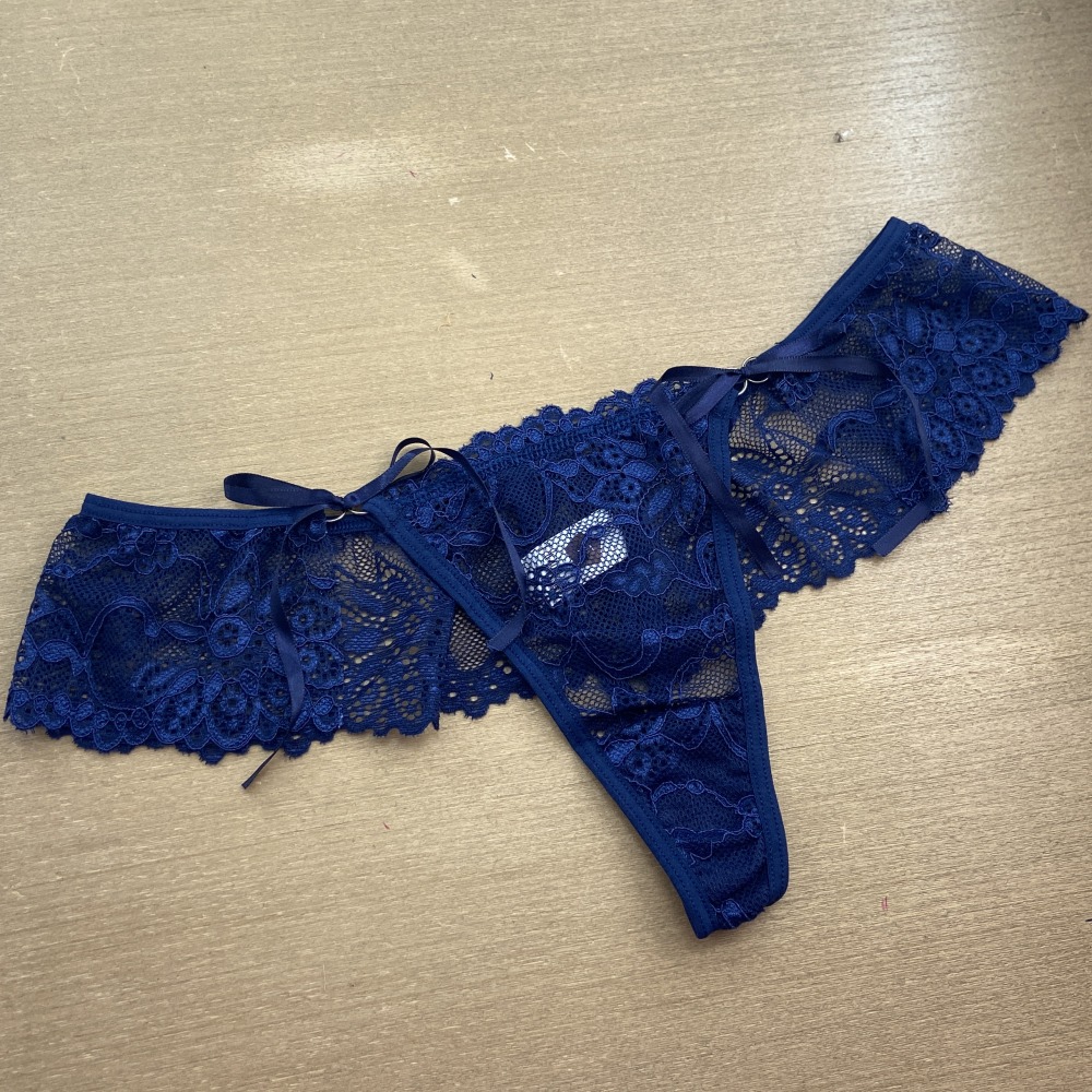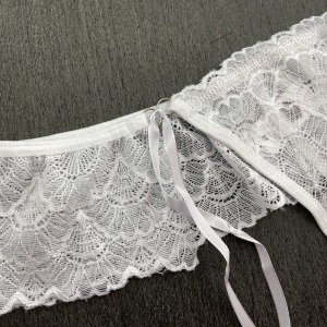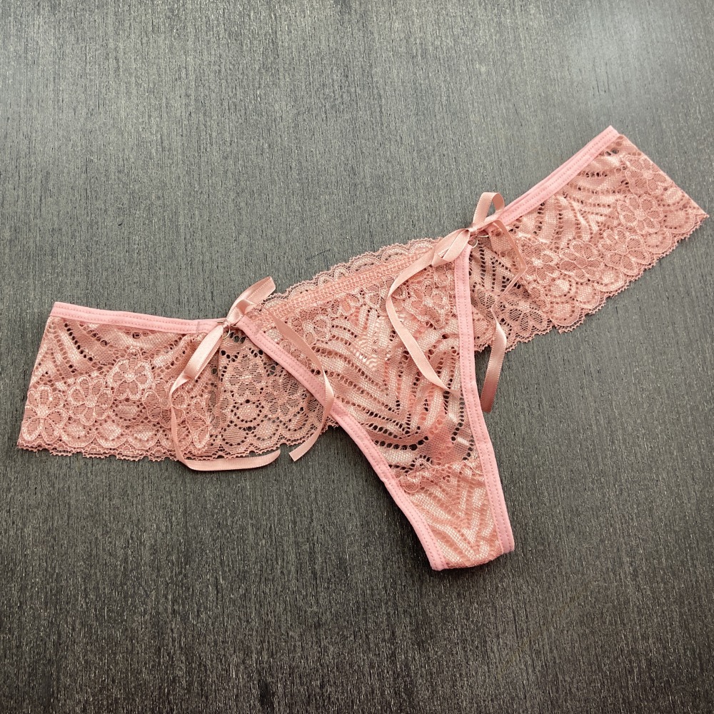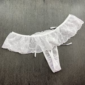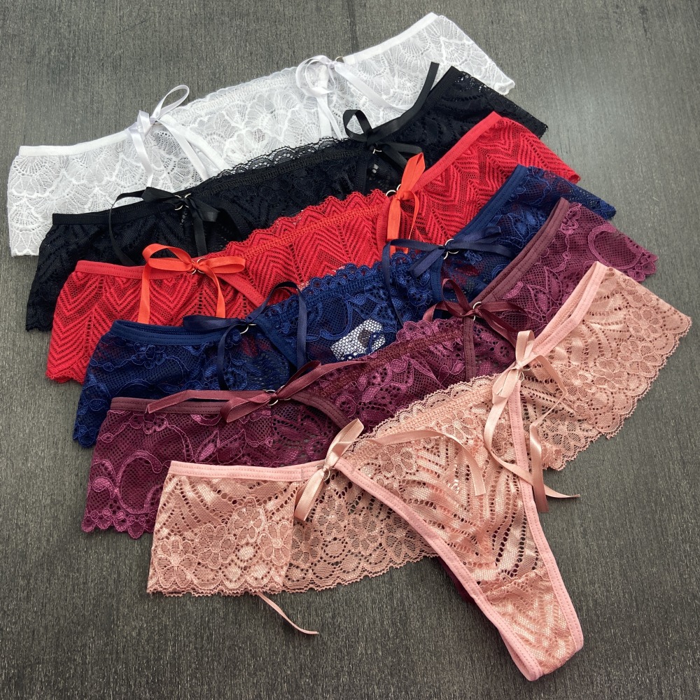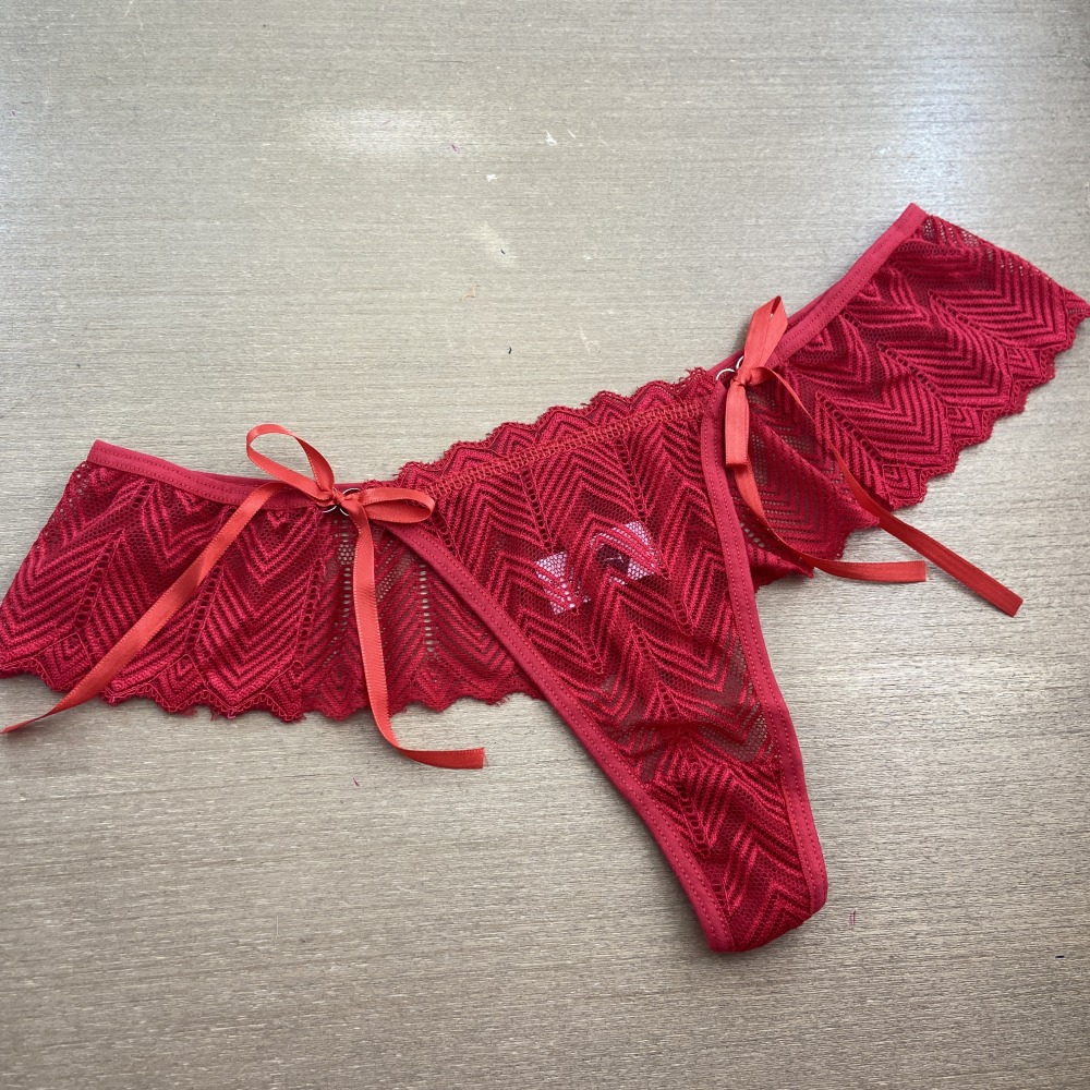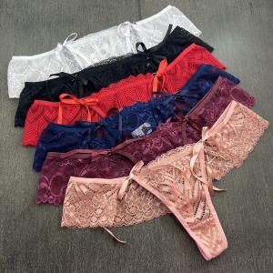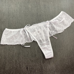 Calcinha fio dental em renda de poliamida com detalhe de amarração em fita de cetim na lateral. Acabamento em viés macio para maior conforto e ajuste ao corpo, perfeito para uma noite romântica! Você vai amar!