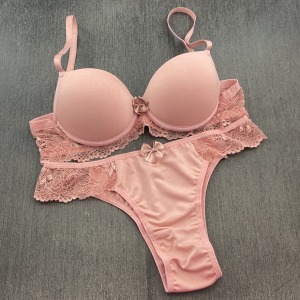 Conjunto básico que não pode faltar para o seu dia a dia! Modelo composto por sutiã com bojo revestido em poliamida, pala rendada, arco de metal, fechamento traseiro por colchetes e alças com regulagem. Já a calcinha, possui modelagem tanga com frente e costas em tecido, lateral rendada e forro em algodão.