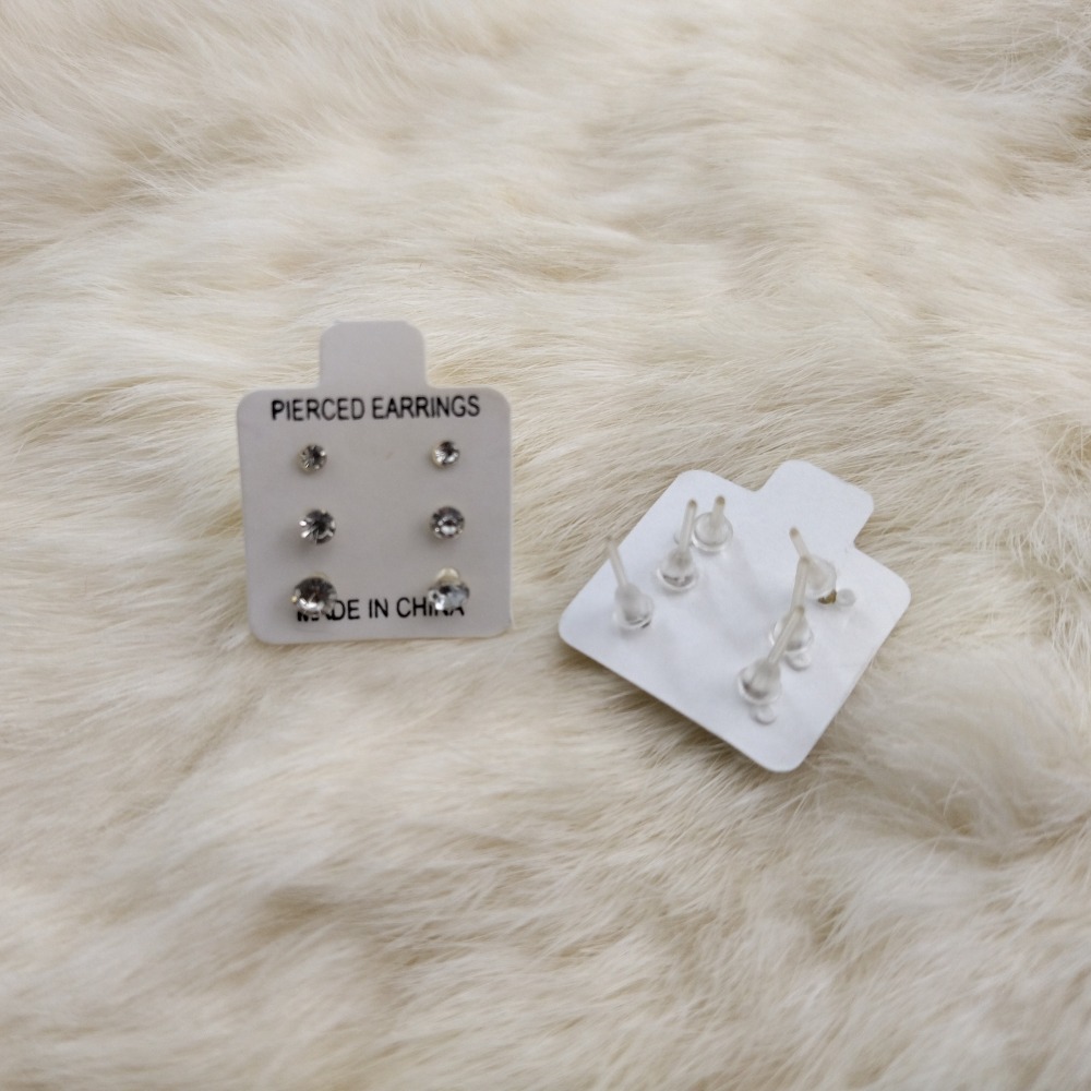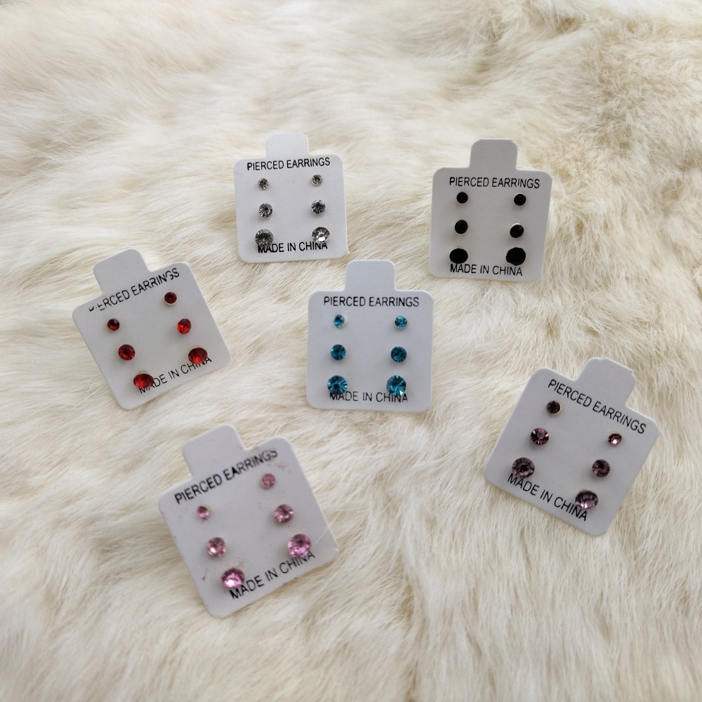 Kit composto por 3 pares de brincos ponto de luz fabricados de plástico.