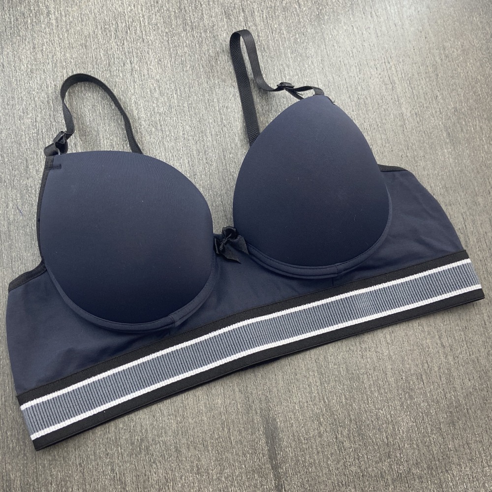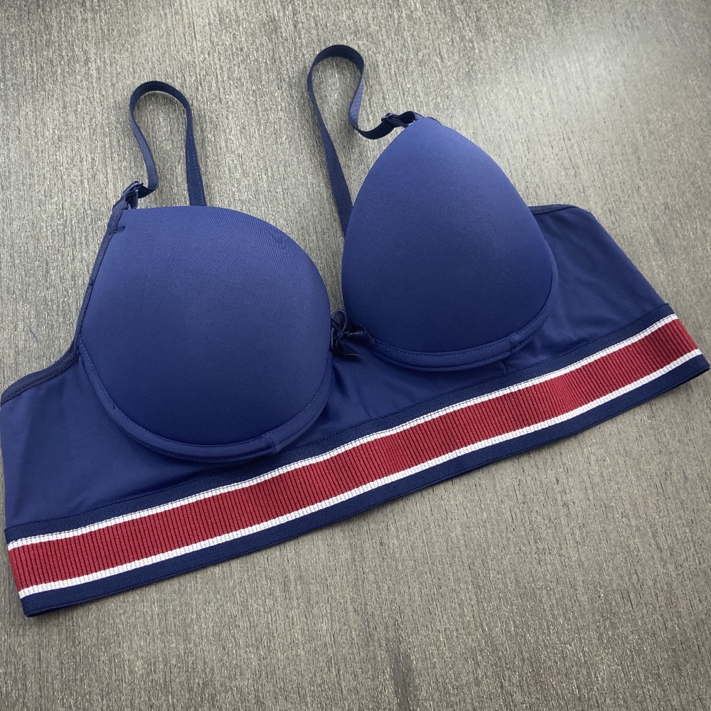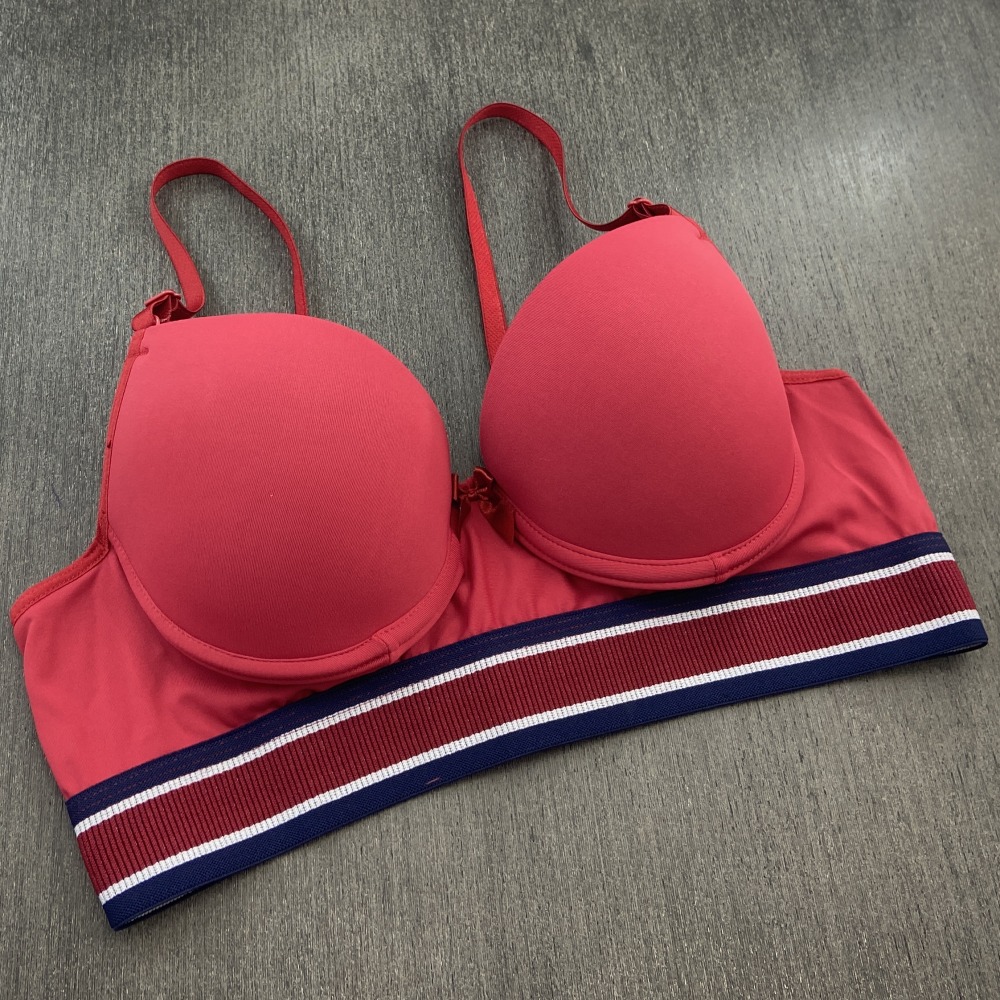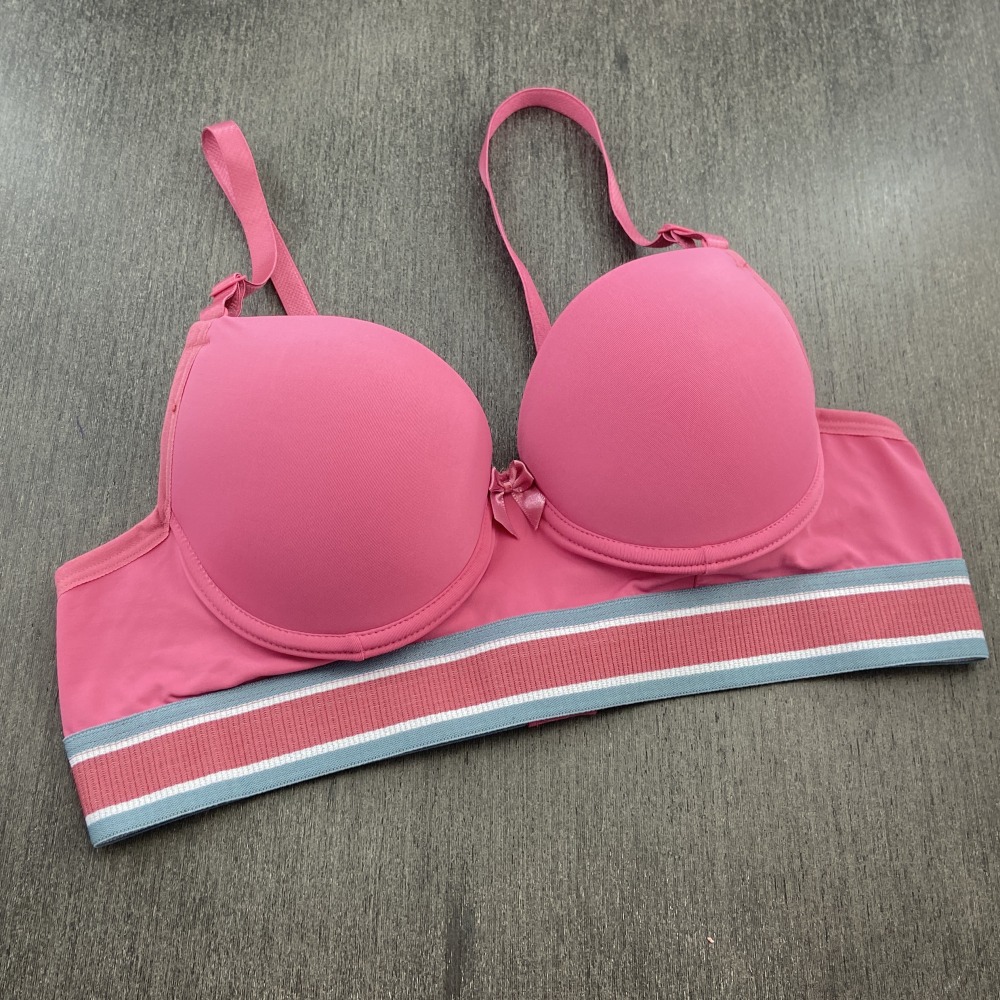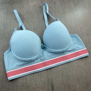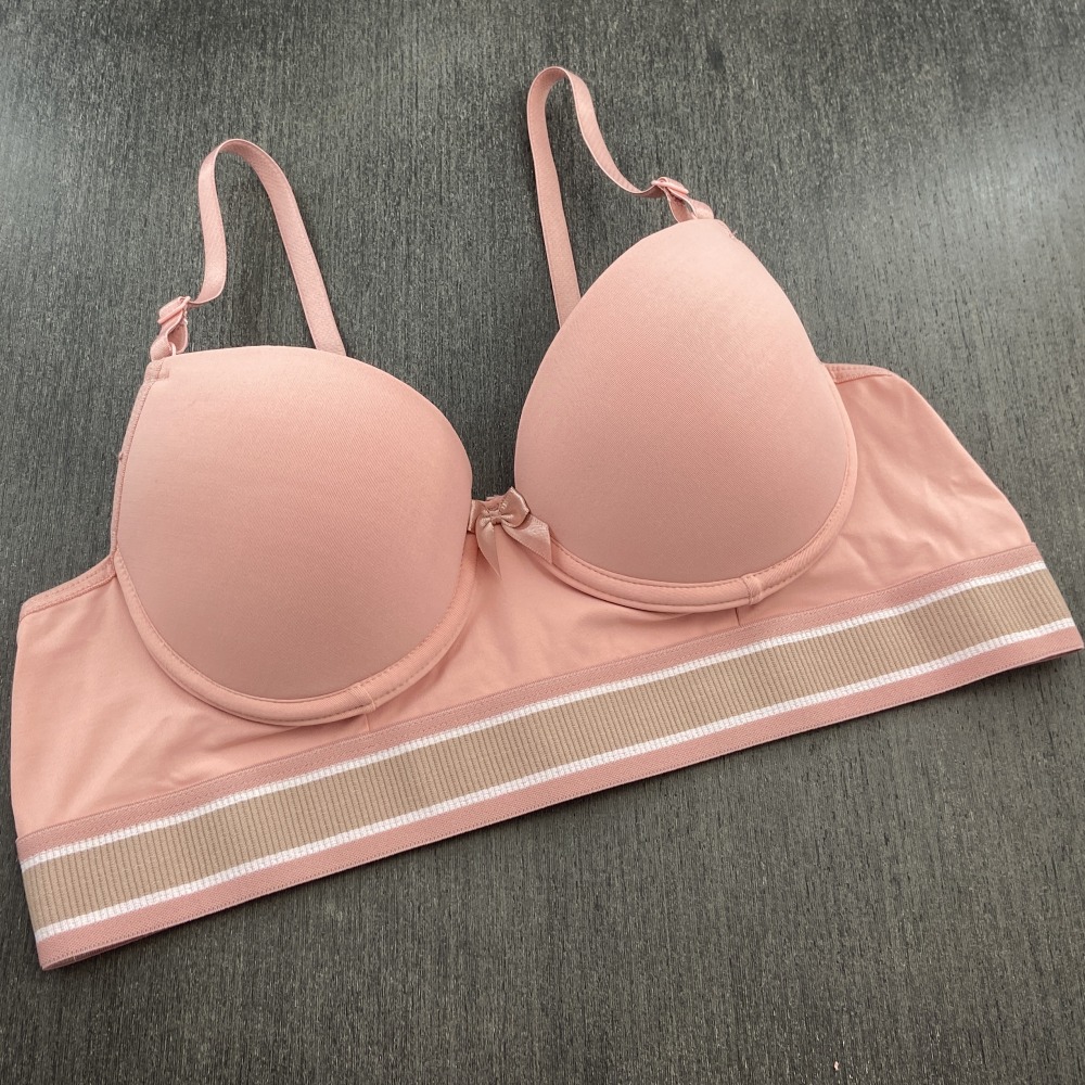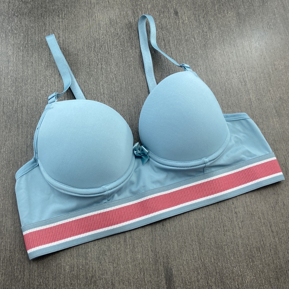 Sutiã confeccionado em tecido de poliamida lisa, possui bojo, lacinho no decote e elástico tricolor que combina com o tecido. Modelo moderno com elástico mais largo na pala que garante maior conforto, possui alças com ajustes de altura e fecho de colchetes nas costas.