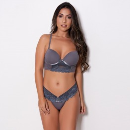 Conjunto Sexy sem Bojo e com Arco em Tule e Renda de Poliamida